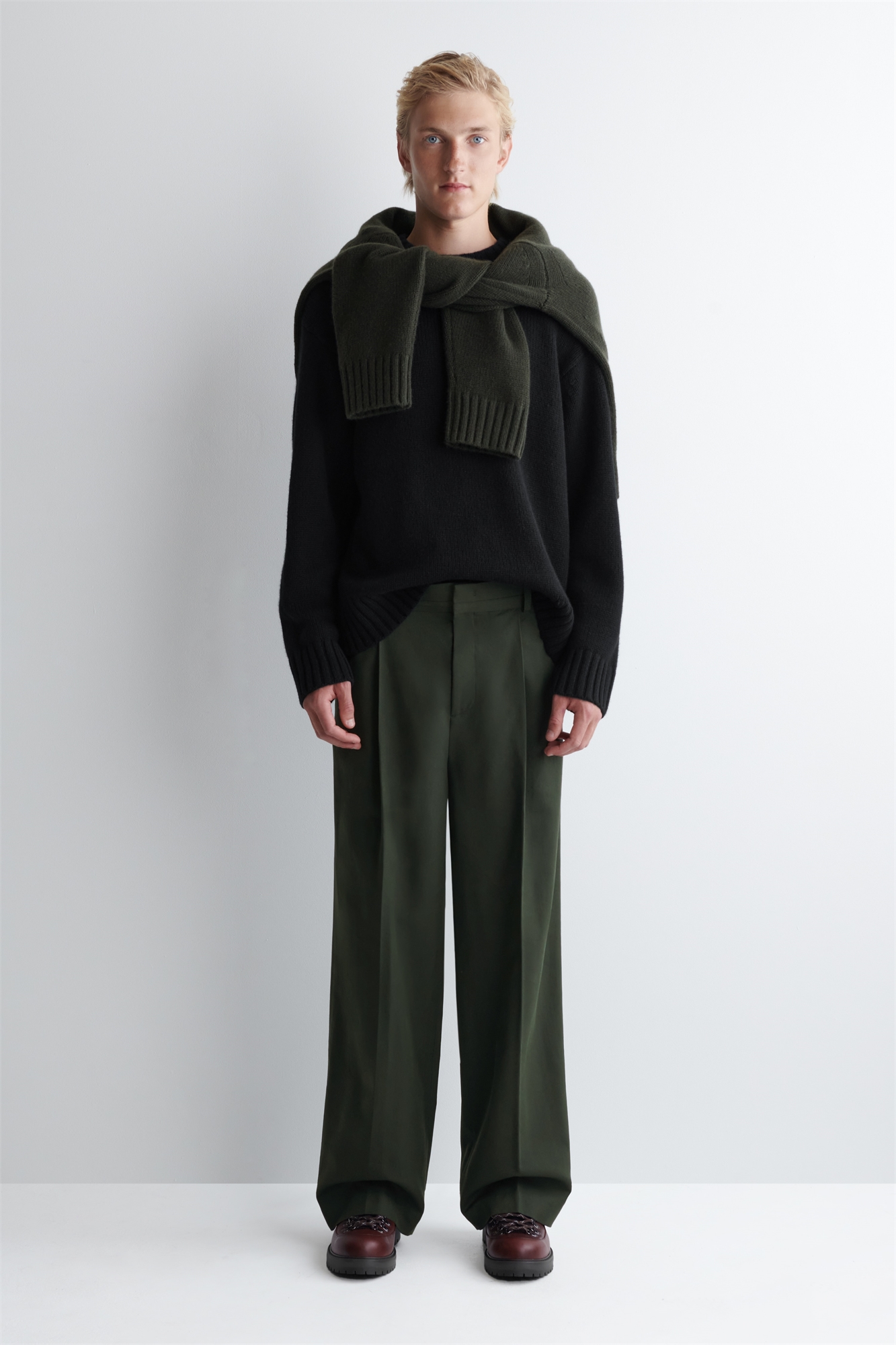 Команда мужской моды переосмыслила классический пошив для современной униформы. Эти брюки сшиты из мягкой хлопчатобумажной саржи и имеют непринужденный покрой с широкими штанинами, петли для ремня, отделку в виде пинетки и плиссировку на талии. Носите их с кроссовками или дерби. Свободный кройЗастежка на крючок, планку и молнию Материал: 55% вискоза, 45% хлопок. Подкладка карманов: 100% хлопок. Без учета отделки / Машинная стирка Внутренняя длина ноги размера EU 48 составляет 76,2 см / Модель носит размер EU 48