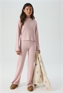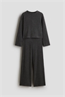 Комплект из топа и брюк из мягкого ребристого трикотажа. Топ с длинными рукавами и круглым вырезом и брюки с эластичной талией и прямыми ногами.