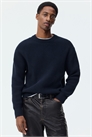 Джемпер из мягкого трикотажа в рубчик с круглым вырезом, спущенными плечами и длинными рукавами. Окантовка вокруг выреза, на манжетах и подоле. Свободный крой для непринужденного, но не слишком большого силуэта.