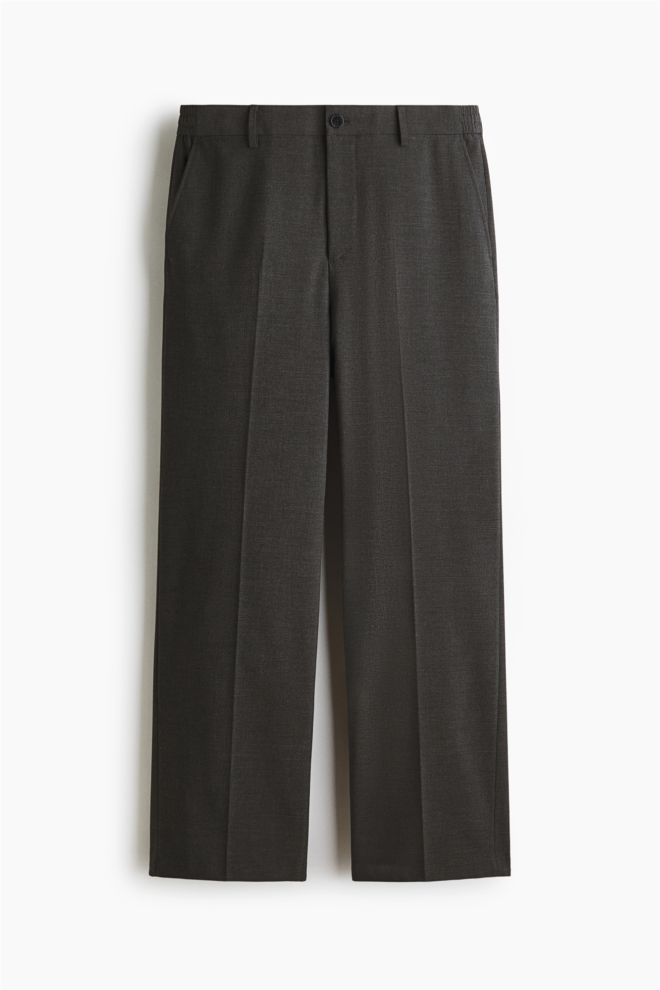 Брюки из тканого материала с ширинкой на молнии, пуговицей и закрытой эластичной резинкой с потайным шнурком на талии. Диагональные боковые карманы, втачные задние карманы на пуговице и ножки со складками. Свободный крой для непринужденного, но не чрезмерного силуэта.