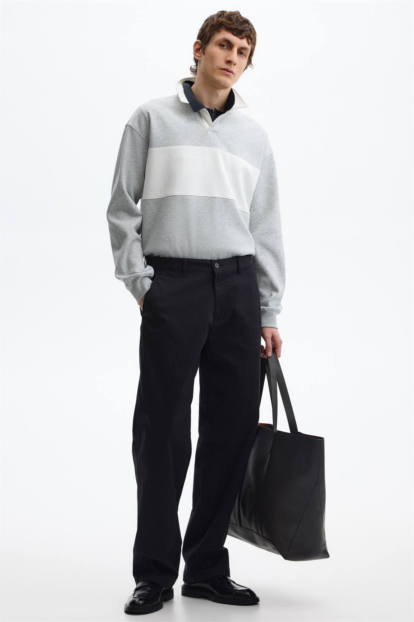 Чиносы из хлопковой саржи с ширинкой на молнии и пуговице, диагональными боковыми карманами и накладными задними карманами на пуговице. Расслабленный крой для непринужденного, но не чрезмерного силуэта.