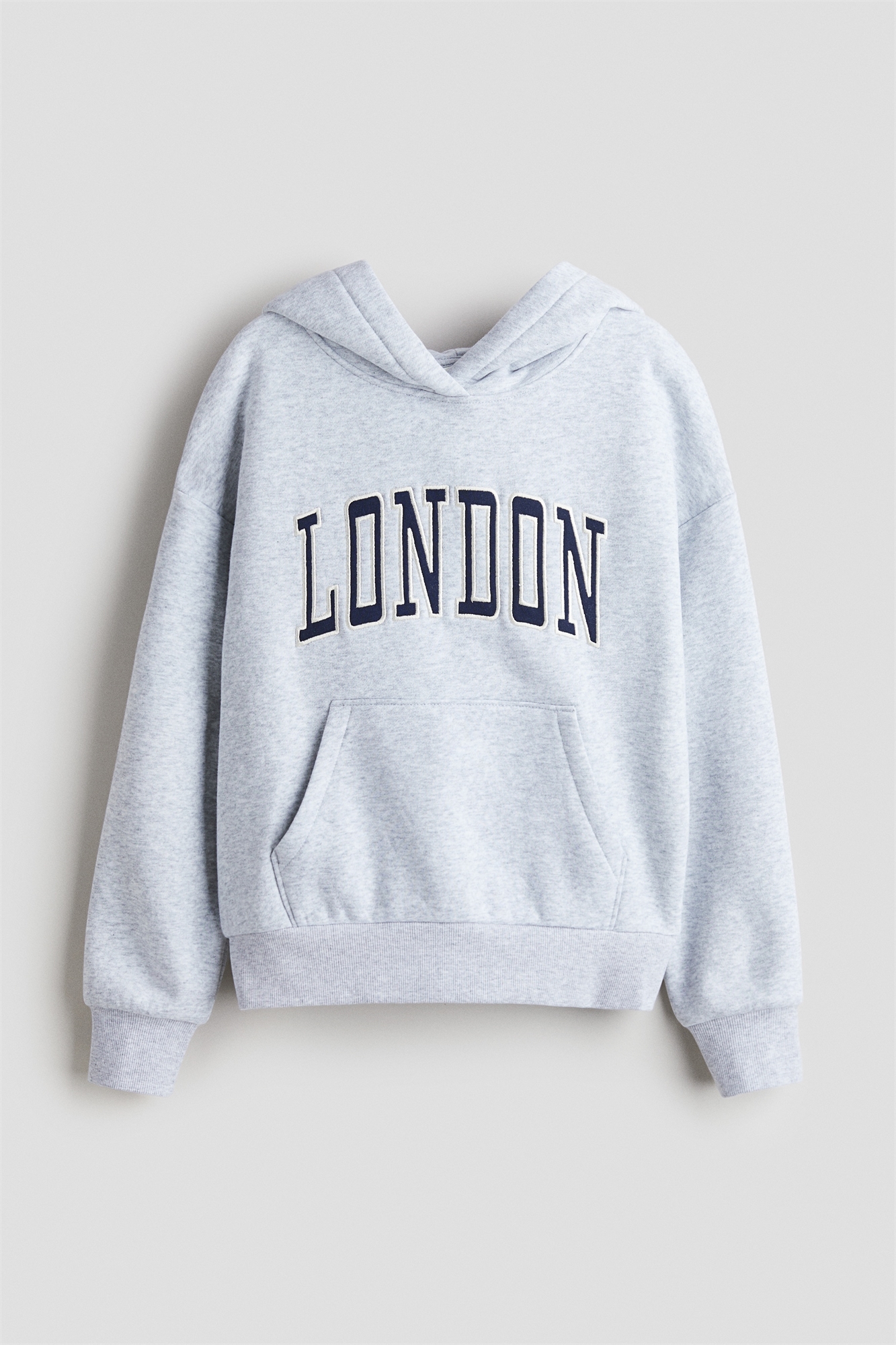 Толстовка свободного кроя из толстовочной ткани с мягкой начесом внутри и деталью из мотивов спереди. Капюшон на трикотажной подкладке, отворачивающийся спереди, с опущенными плечами и карманом-кенгуру. Длинные рукава, манжеты и подол отделаны тесемками.
