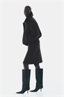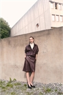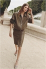 Юбка длиной до колена с диагональными боковыми карманами и потайной застежкой на молнию и крючок-глаз сзади на талии. Подол прямого покроя с разрезом спереди. На подкладке.