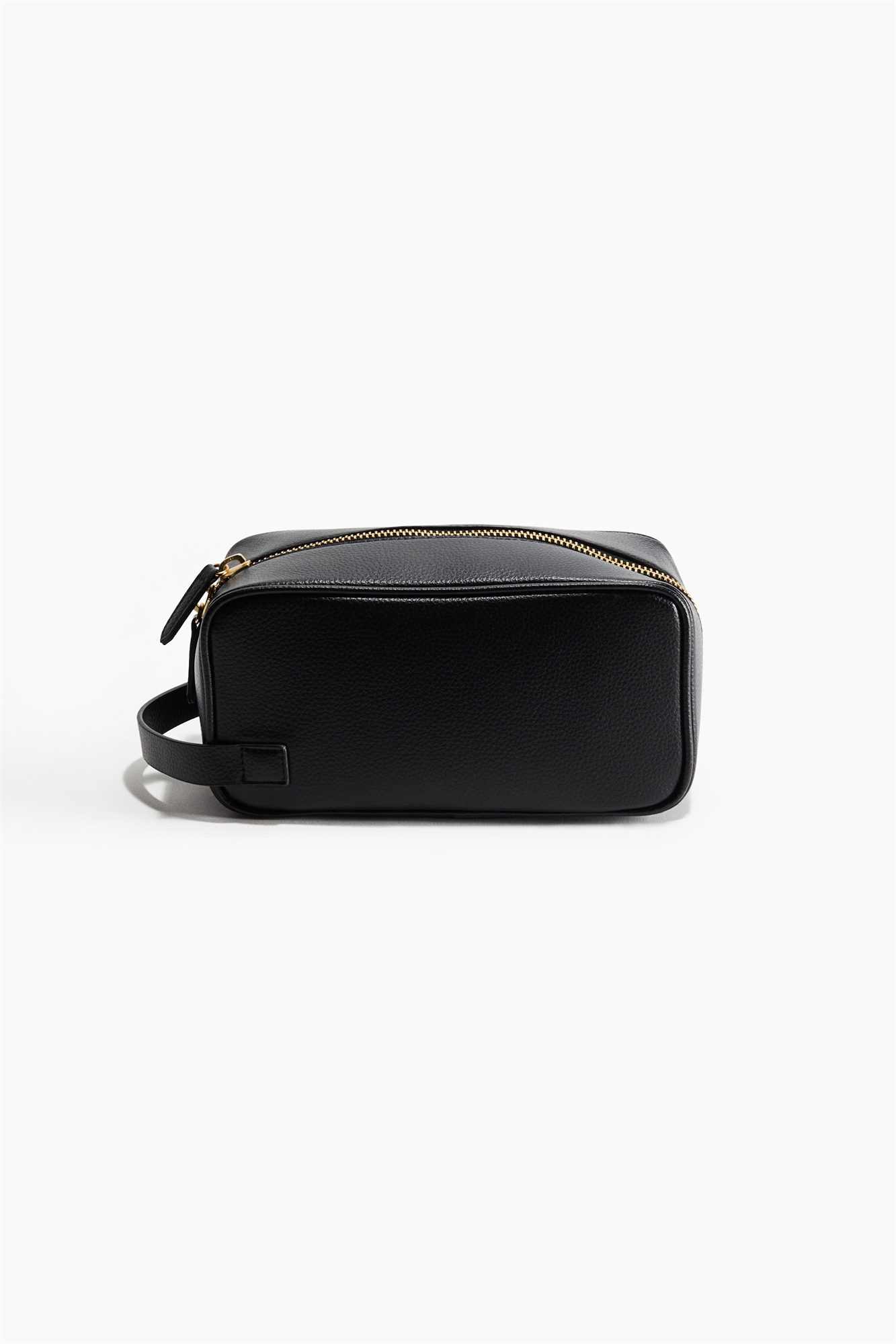 Сумка для стирки из мелованной ткани с ручкой с одной стороны и двусторонней застежкой-молнией сверху, которая слегка расширяется по бокам. Подкладка из тафты.