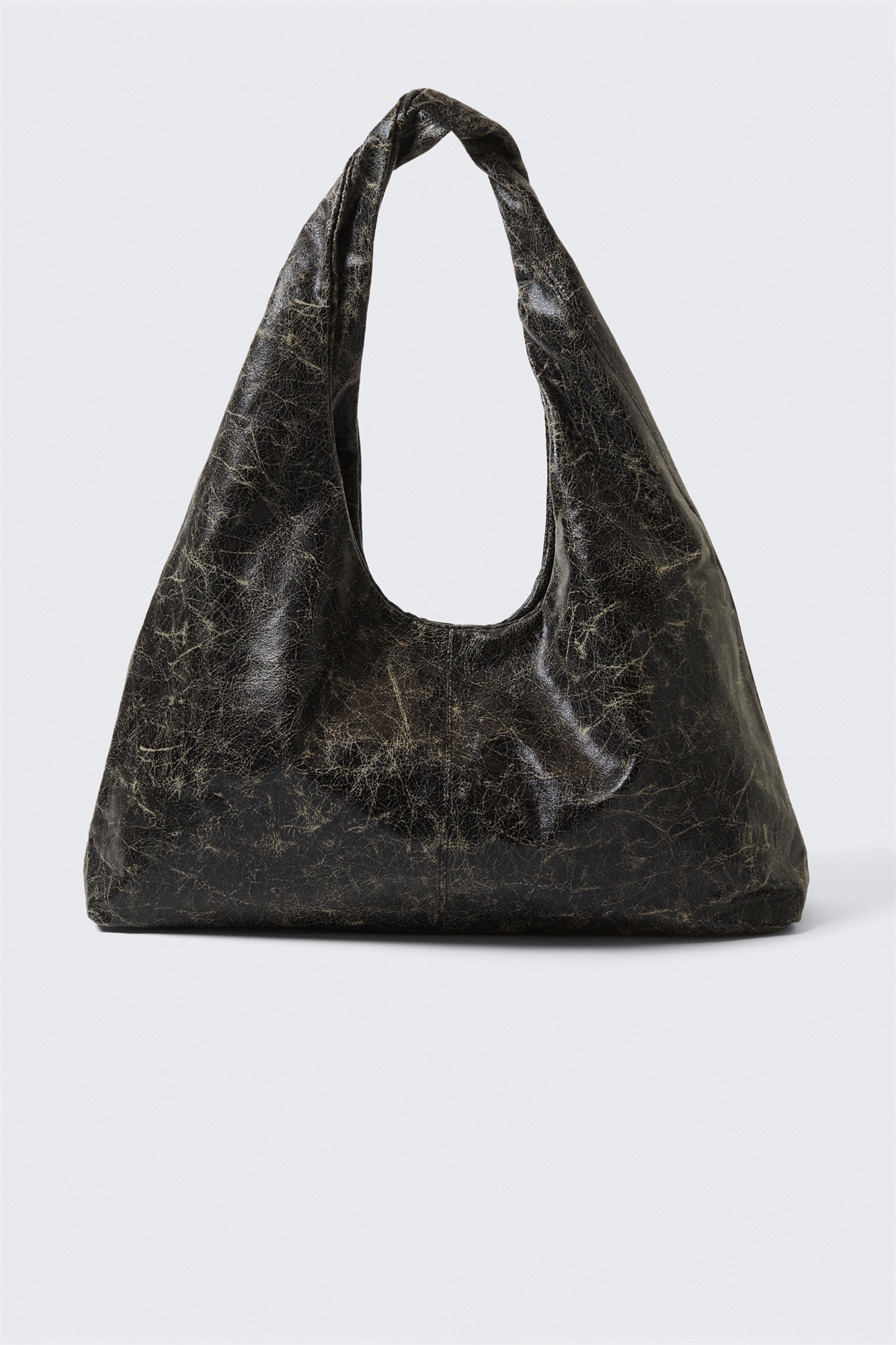 Непринужденная сумка через плечо со скульптурным объемом и мягкой отделкой. Сумка выполнена из искусственной кожи и имеет мягкий треугольный силуэт. Полностью на подкладке, с внутренним карманом и скрытой магнитной застежкой. Размеры: 46 см в ширину, 38 см в высоту, 12 см в глубину, длина ручки 34 см.