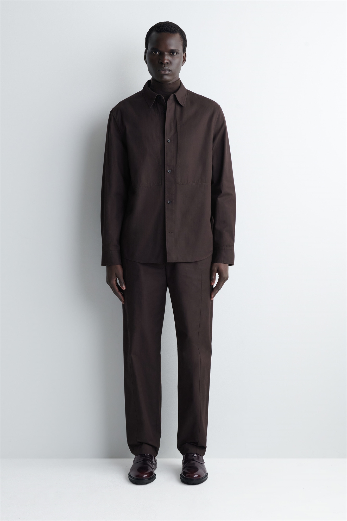 Эти современные брюки представляют собой элегантный вариант повседневной униформы. Они сшиты из хрустящего хлопка и имеют слегка зауженные ножки, петли для ремня и частично эластичный пояс. Подойдите к рубашке в тон.