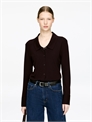 Рубашка из эластичной ткани джерси с отложным воротником, глубоким вырезом спереди и перламутровыми пуговицами. Глубокие манжеты с разрезами и перламутровая застежка на пуговицах. Облегающий крой.