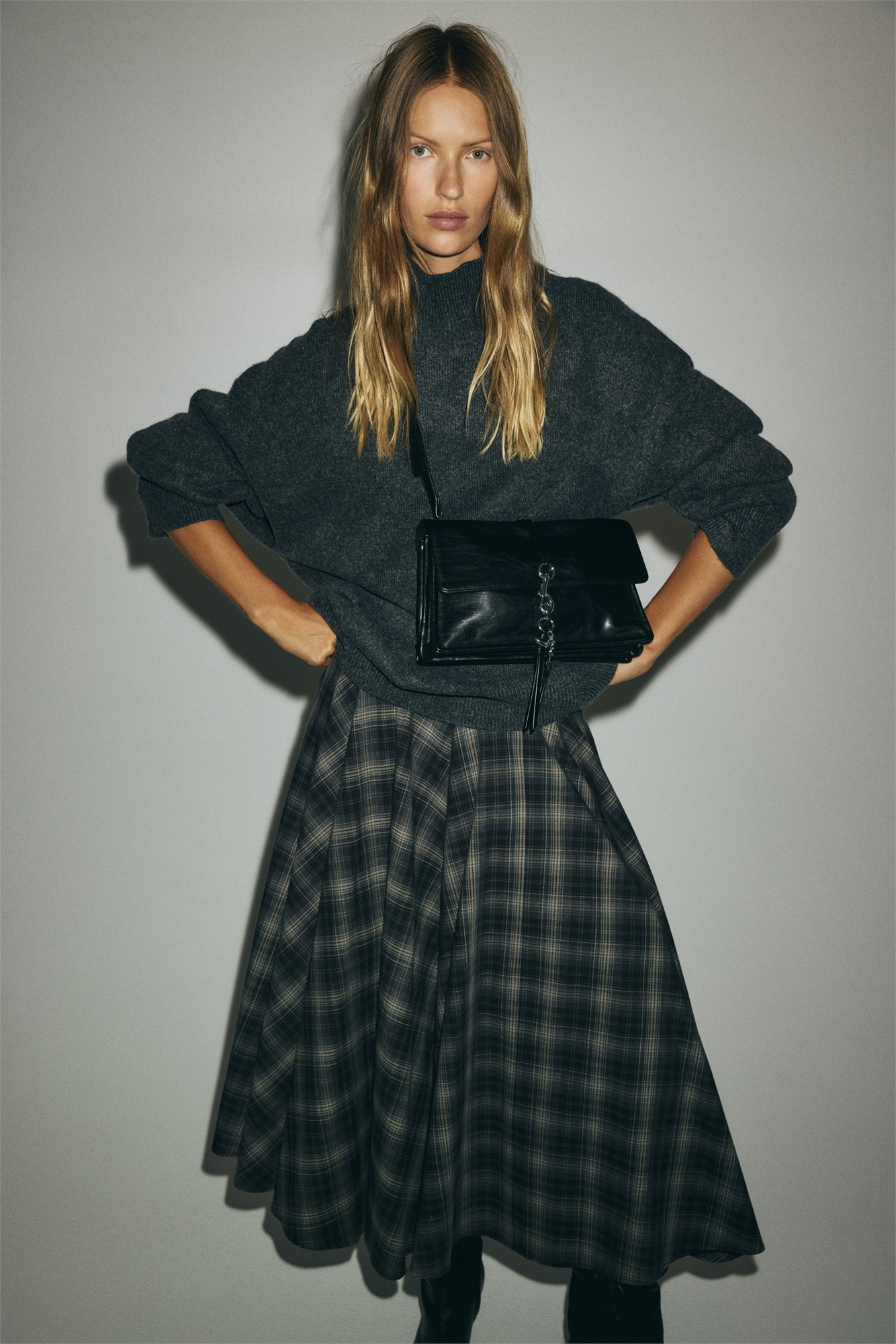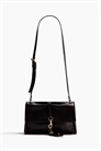 Сумка-кроссбоди с клапаном на завязке и крючком-карабином, который застегивается на металлическое кольцо, украшенное брелоком в виде сумки. Регулируемый плечевой ремень с квадратной металлической пряжкой. На подкладке.