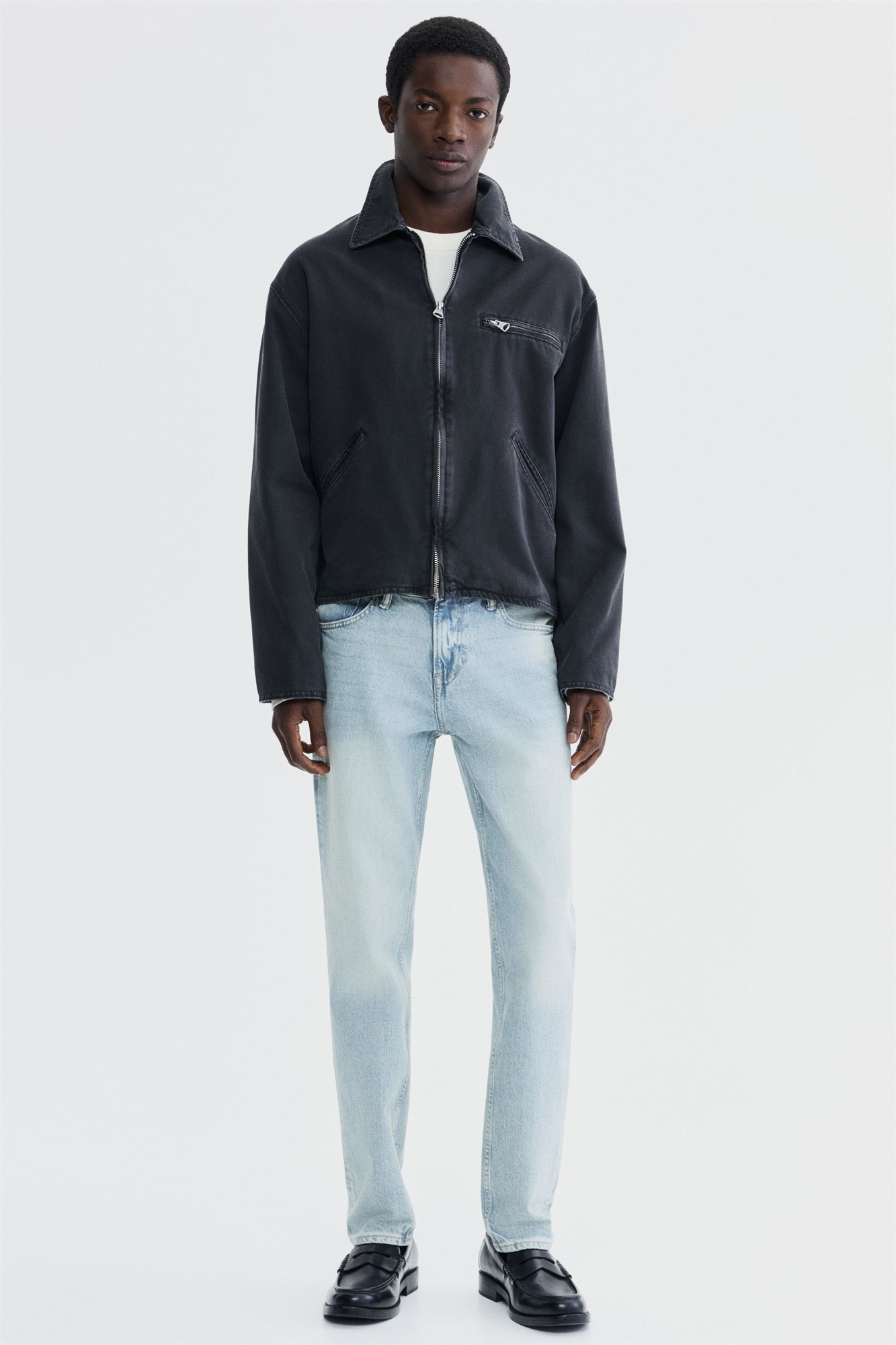 Джинсы с 5 карманами из хлопкового денима с легким стретчем для комфорта. Прямые штанины и зауженный крой от талии через бедра к подолу. Зауженный пояс и ширинка на молнии