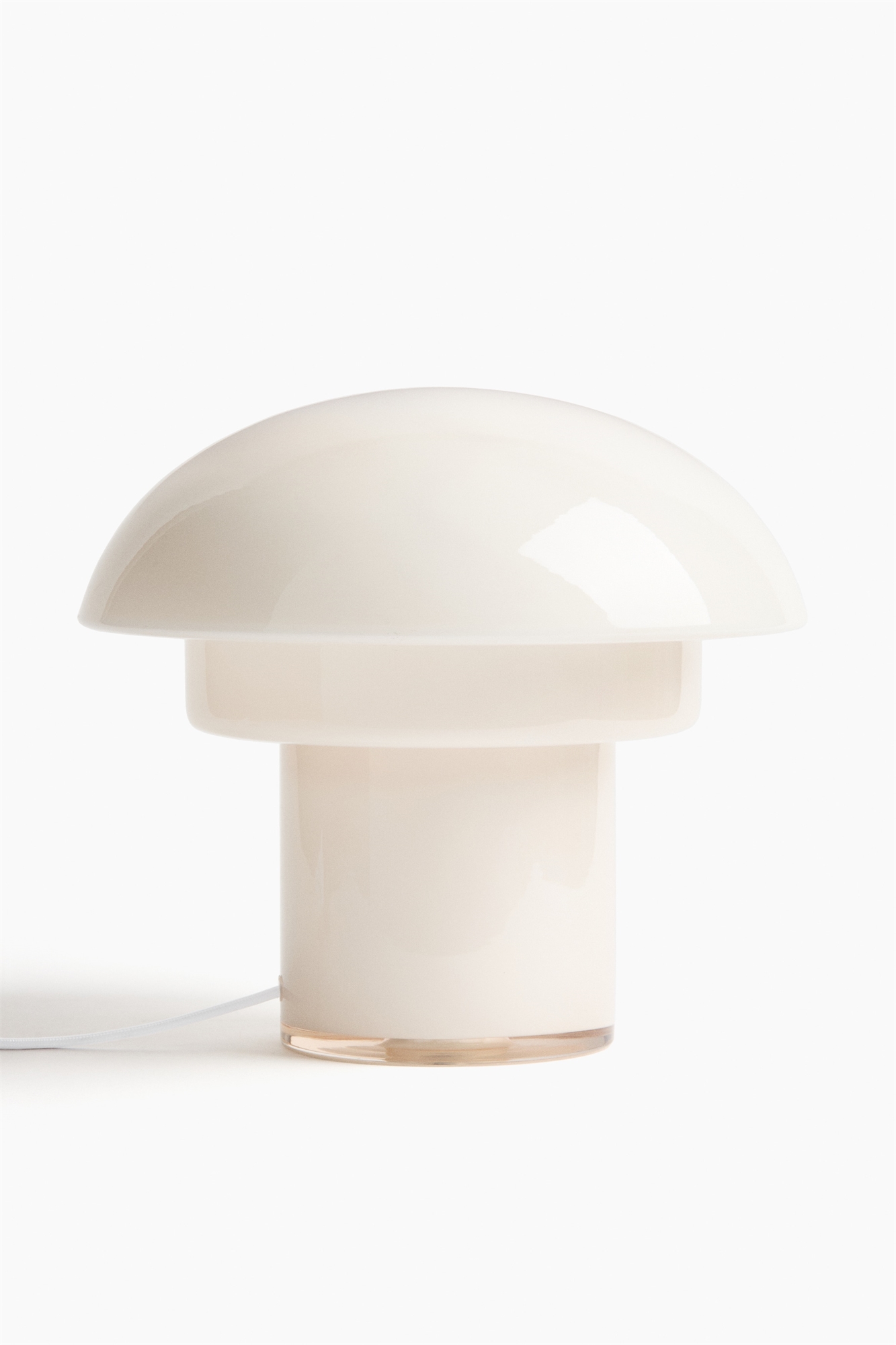 Настольная лампа из цветного стекла с округлым геометрическим рисунком. Шнур в тканевой оболочке с пластиковым выключателем и патроном E14. Максимальная мощность 6 Вт. Лампочка в комплект не входит.