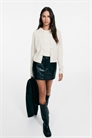 Приталенный кардиган из мягкого тонкого трикотажа с круглым вырезом и пуговицами спереди. Окантовка вокруг выреза, на манжетах и подоле.