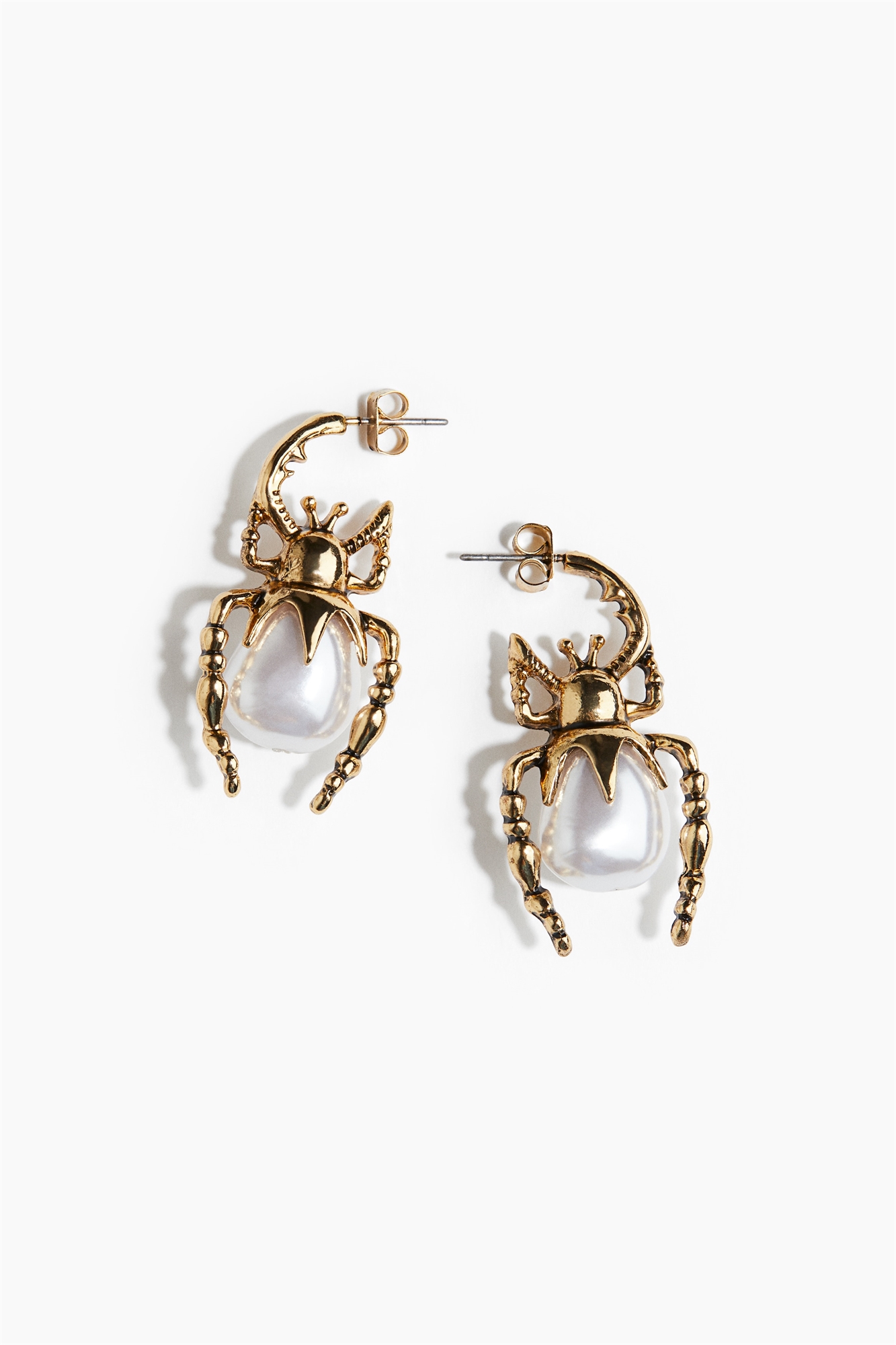 Металлические серьги в форме паука, украшенные перламутровой пластиковой бусиной.