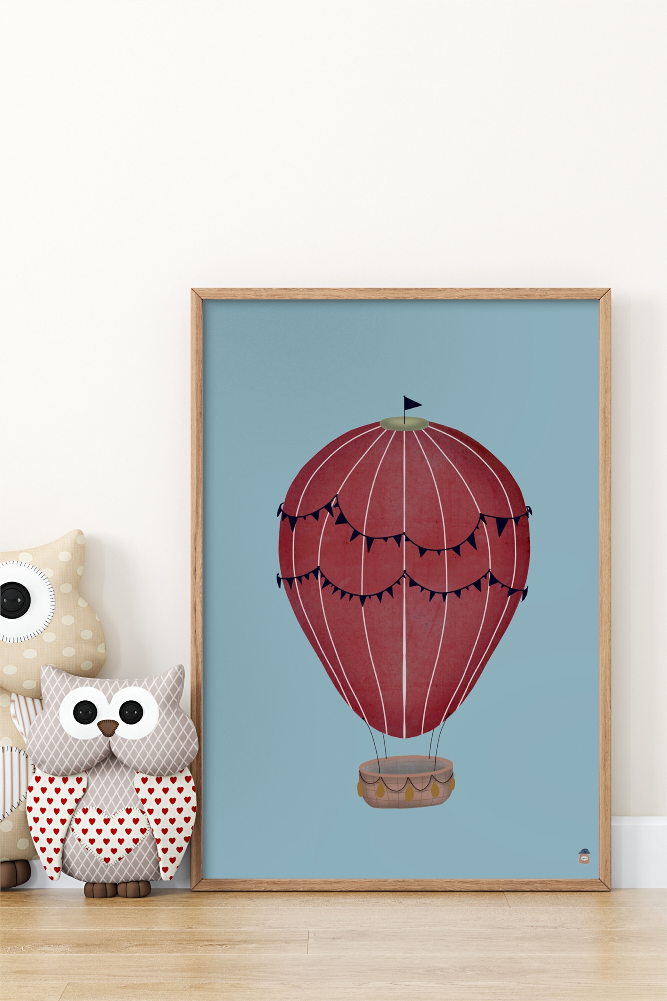 ** Рамка в комплект не входит. ** На этом очаровательном плакате изображен воздушный шар в винтажном стиле глубокого красного оттенка, украшенный нежными бантиками и маленьким флажком на вершине. На приглушенном голубом фоне картина излучает ностальгическое, игривое очарование. Элегантный дизайн делает ее прекрасным дополнением к интерьерам, вдохновленным путешествиями, детским комнатам или мечтательным коллекциям настенного искусства. Идеально подходит для тех, кто любит приключения и винтажную эстетику, этот уникальный принт привнесет в любую комнату ощущение чуда и открытий.