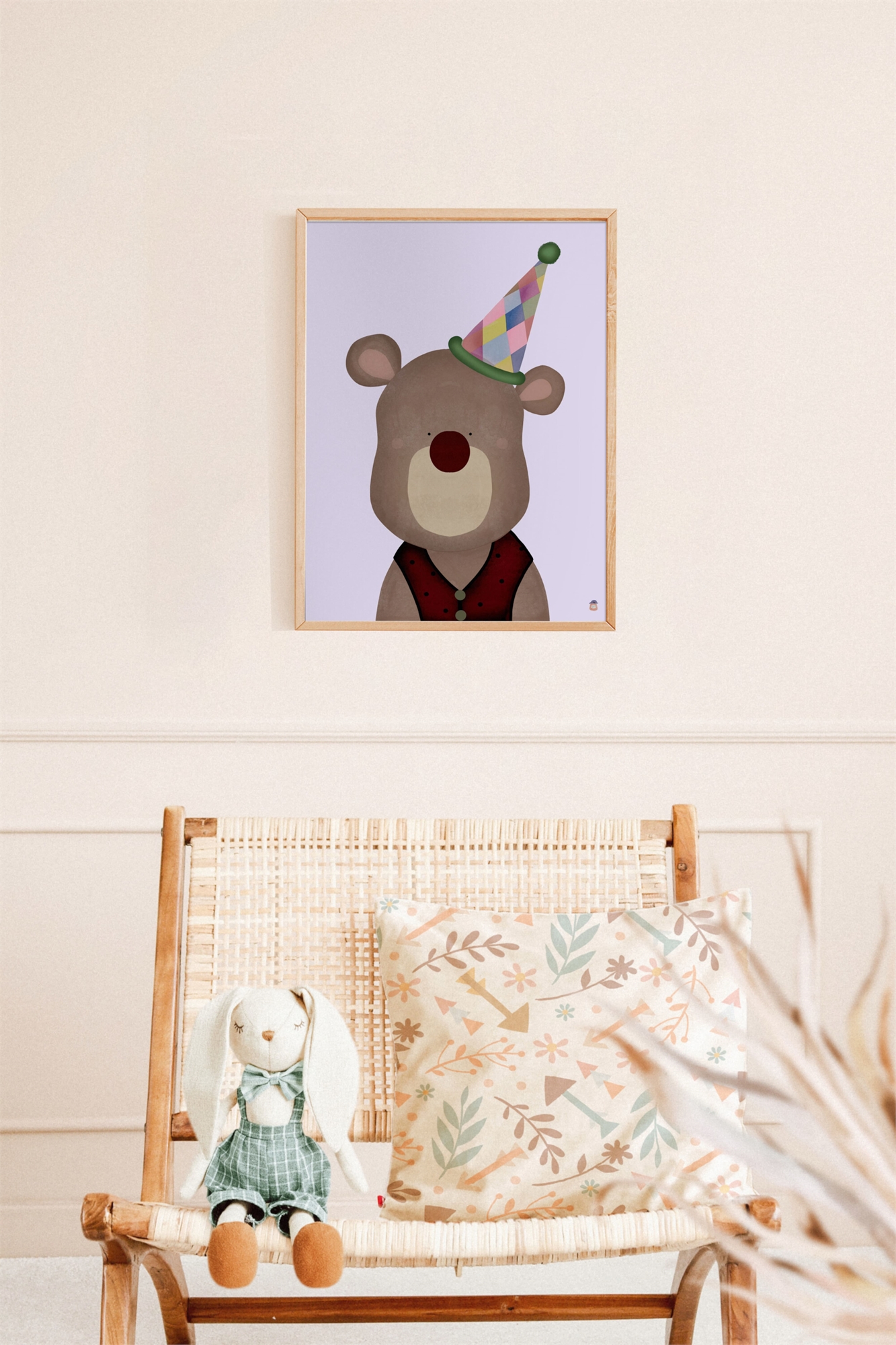 ** Рамка в комплект не входит. ** На этом очаровательном плакате изображен милый медвежонок, одетый в праздничный наряд, дополненный жилетом в винтажном стиле и красочной праздничной шляпой с узором арлекина. Благодаря мягким пастельным тонам и минималистичному дизайну эта работа излучает тепло и игривость и идеально подходит в качестве декоративного элемента для детских комнат, яслей или коллекций игривого искусства. Милое выражение лица и ностальгическая эстетика добавят восхитительный штрих в любую комнату и идеально подойдут для тех, кто любит уютные, вдохновленные сказкой иллюстрации.