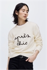 Джемпер из мягкого трикотажа с жаккардовым мотивом спереди. Ребристая горловина, слегка спущенные плечи и длинные рукава. Ребристые манжеты и подол.