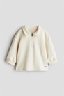 Поло из хлопковой толстовки с мягким начесом внутри. Воротник, застежка-молния, спущенные плечи и длинные рукава с манжетами. Подол прямого кроя с небольшим разрезом с каждой стороны.