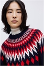 Джемпер оверсайз из мягкого жаккардового трикотажа с круглым ребристым вырезом и длинными рукавами реглан. Ребристые манжеты и подол.