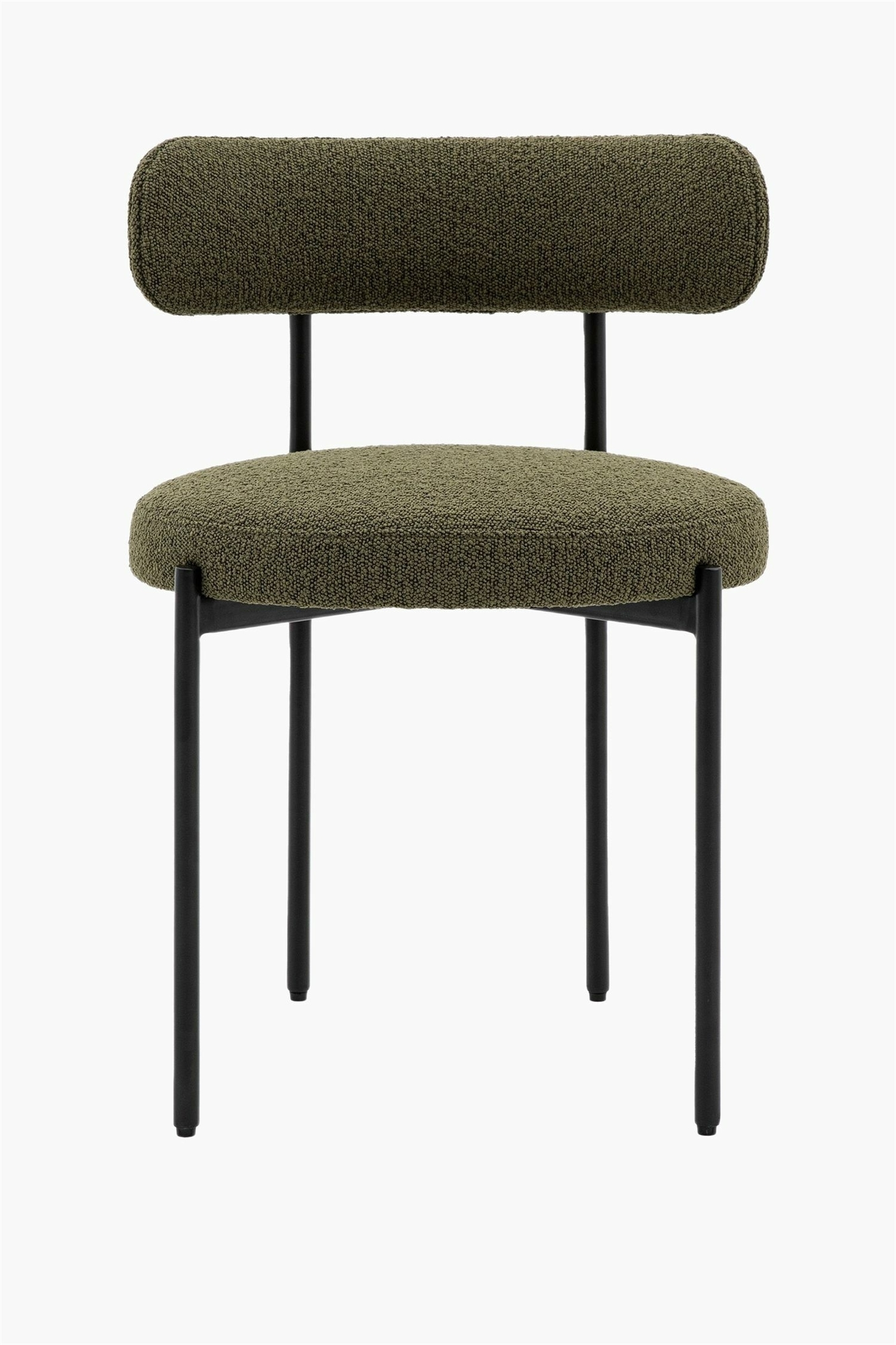 Добавьте стильный дизайнерский штрих в комнату с помощью этого комплекта из двух потрясающих обеденных стульев. Сиденья и спинки обиты прекрасной зеленой тканью, изогнутая спинка повторяет форму круглого сиденья, а черные металлические ножки и каркас прекрасно дополняют их. Размеры: W525mmxD510mmxH750mm