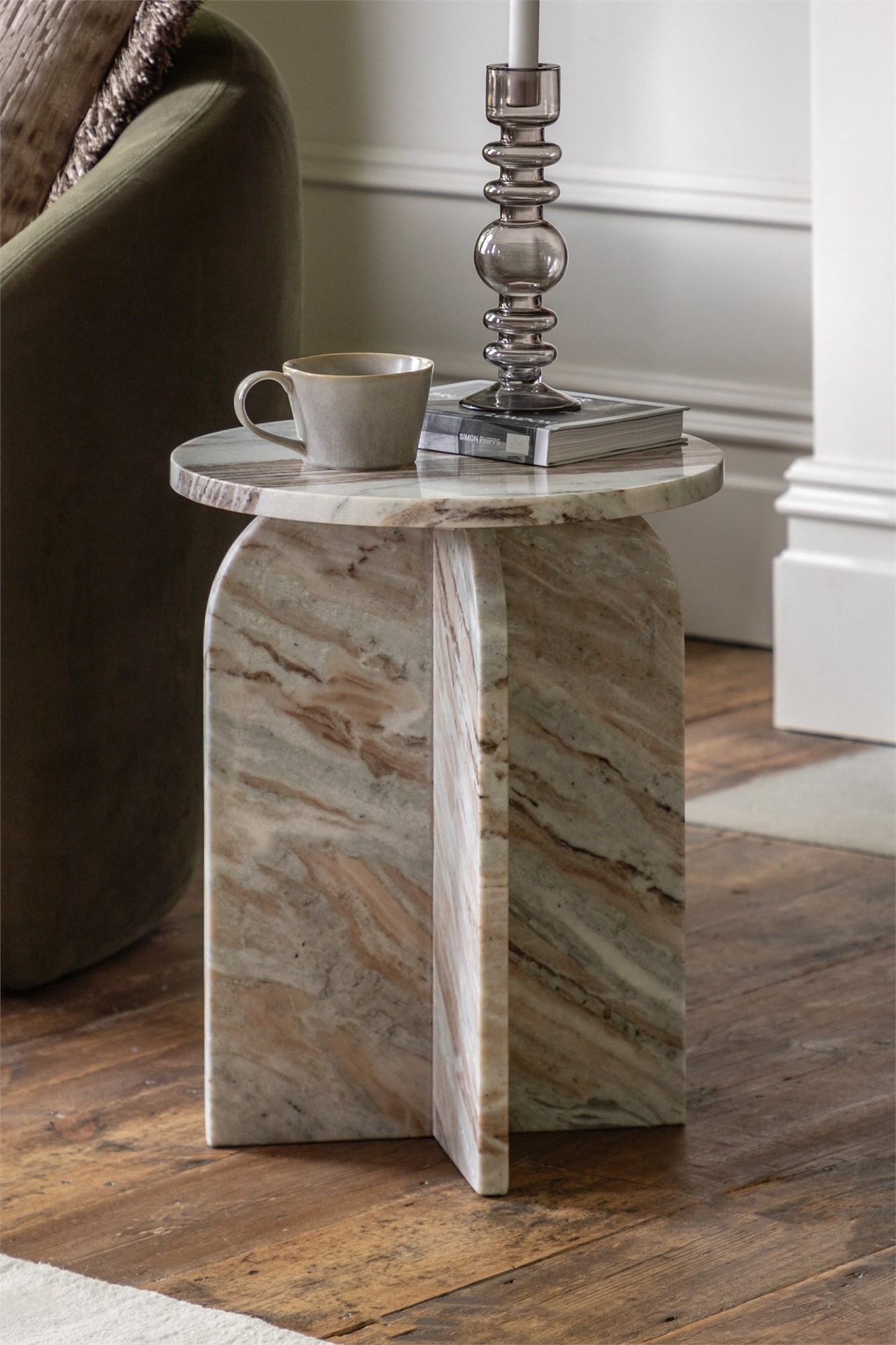 Добавьте в комнату нотку стиля с помощью этого красивого столика, изготовленного из мрамора. Массивная столешница и основание демонстрируют естественный рисунок мрамора, а основание имеет мягко изогнутые вершины, создавая потрясающий дизайн: W400mmxD400mmxH500mm