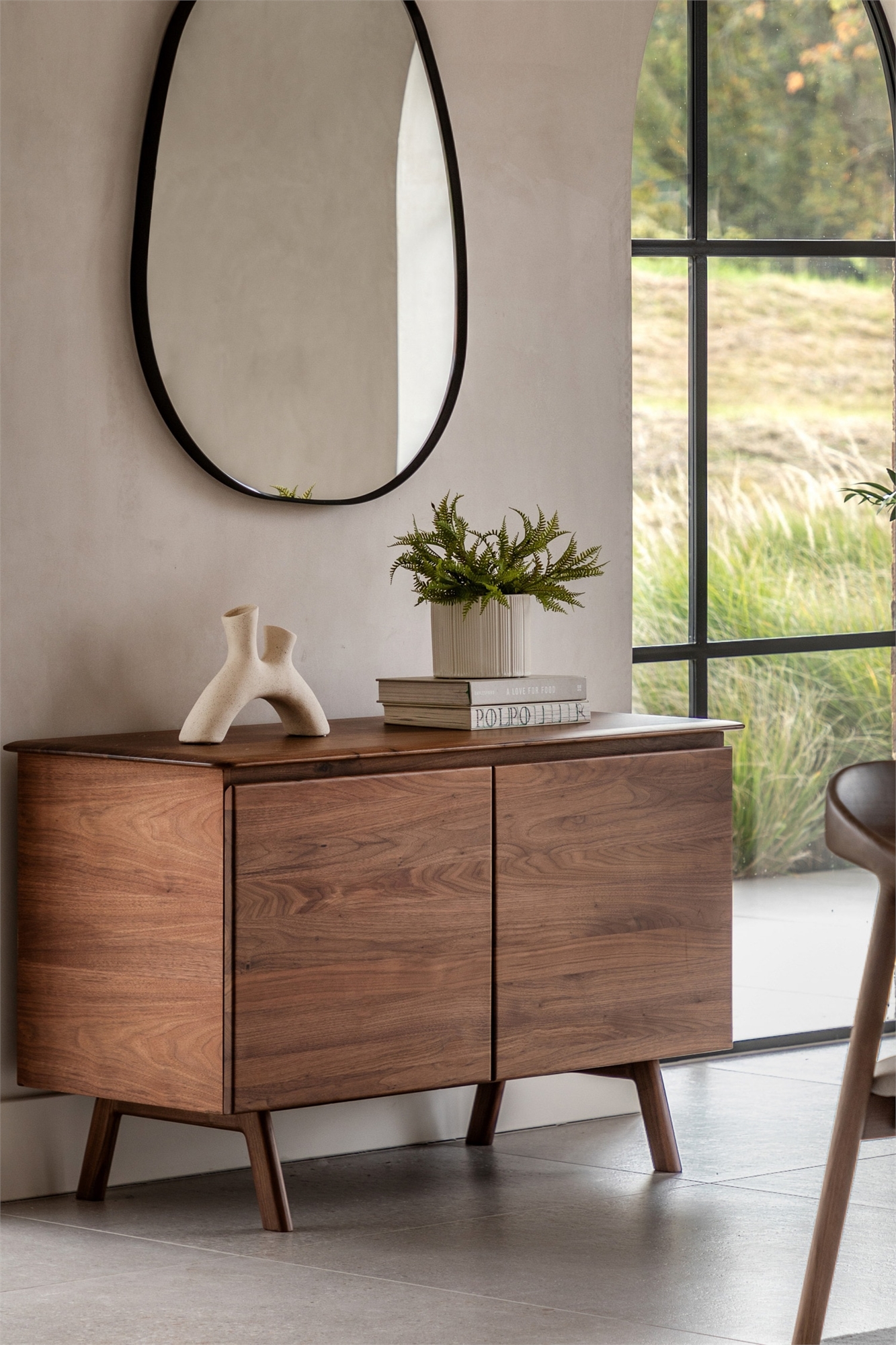 Этот двухдверный сервант из орехового дерева - стильное и функциональное дополнение к серии Madrid, вдохновленное современным дизайном середины века. Этот сервант оснащен двумя вместительными дверцами, которые обеспечивают достаточно места для хранения ваших вещей. Чистые линии и конические ножки создают минималистичный и современный вид, а богатая отделка орехом придает роскошь и тепло любому помещению. Идеально подходит для гостиной, столовой или прихожей.Размеры: W1160mmxD450mmxH700mm