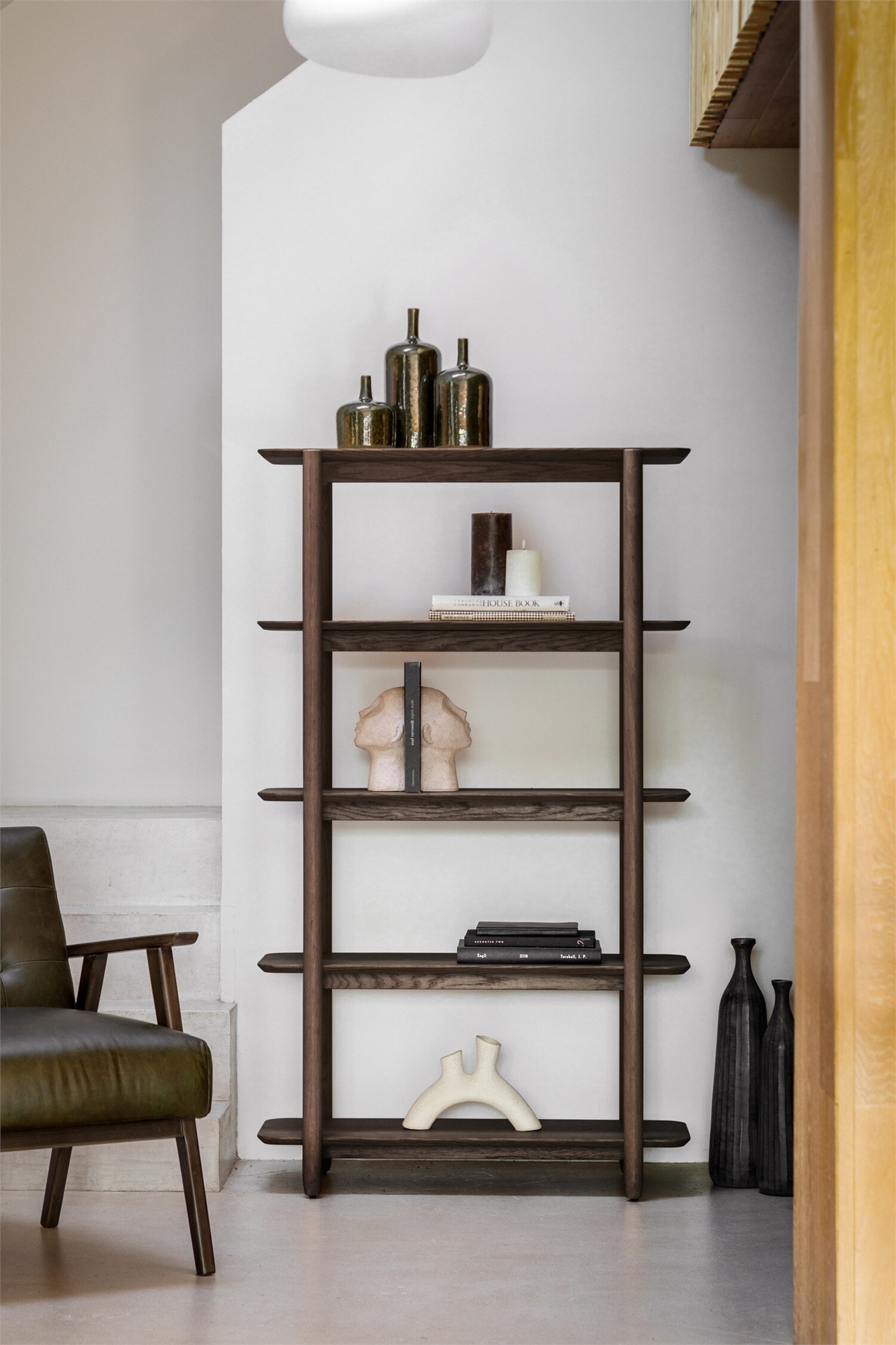 Эта открытая витрина натурального цвета - стильное и функциональное дополнение к любой комнате. Его чистые линии и дубовая конструкция создают минималистичный и современный вид. Пять вместительных полок предлагают достаточно места для хранения книг, растений или декоративных предметов. Дымчатая отделка создает теплый и привлекательный вид, идеально подходящий для того, чтобы добавить нотку скандинавского стиля в ваш дом.Размеры: W1500mmxD380mmxH700mm
