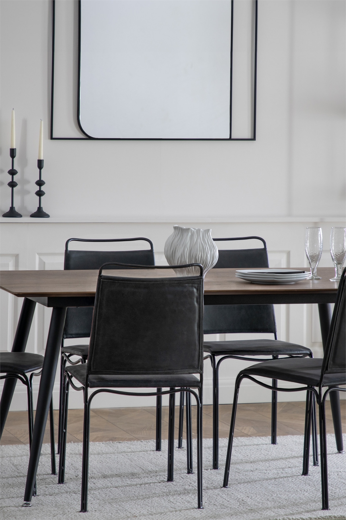 Этот потрясающий обеденный стол выглядит в современном стиле, сочетая столешницу из дубового шпона с элегантными ножками из черного металла, а хромированные ножки добавляют завершающую деталь дизайна.Размеры: W1600mmxD900mmxH750mm