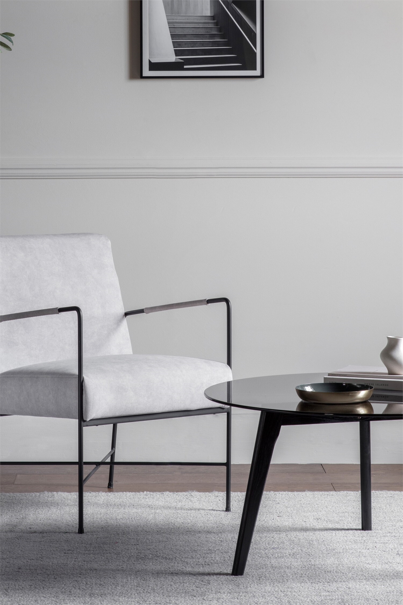 Современное кресло с черным металлическим каркасом и мягкими сиденьем и спинкой. Узкие металлические ручки с тканевой обивкой идеально подходят для квартир и других небольших помещений.Размеры: W560mmxD745mmxH820mm