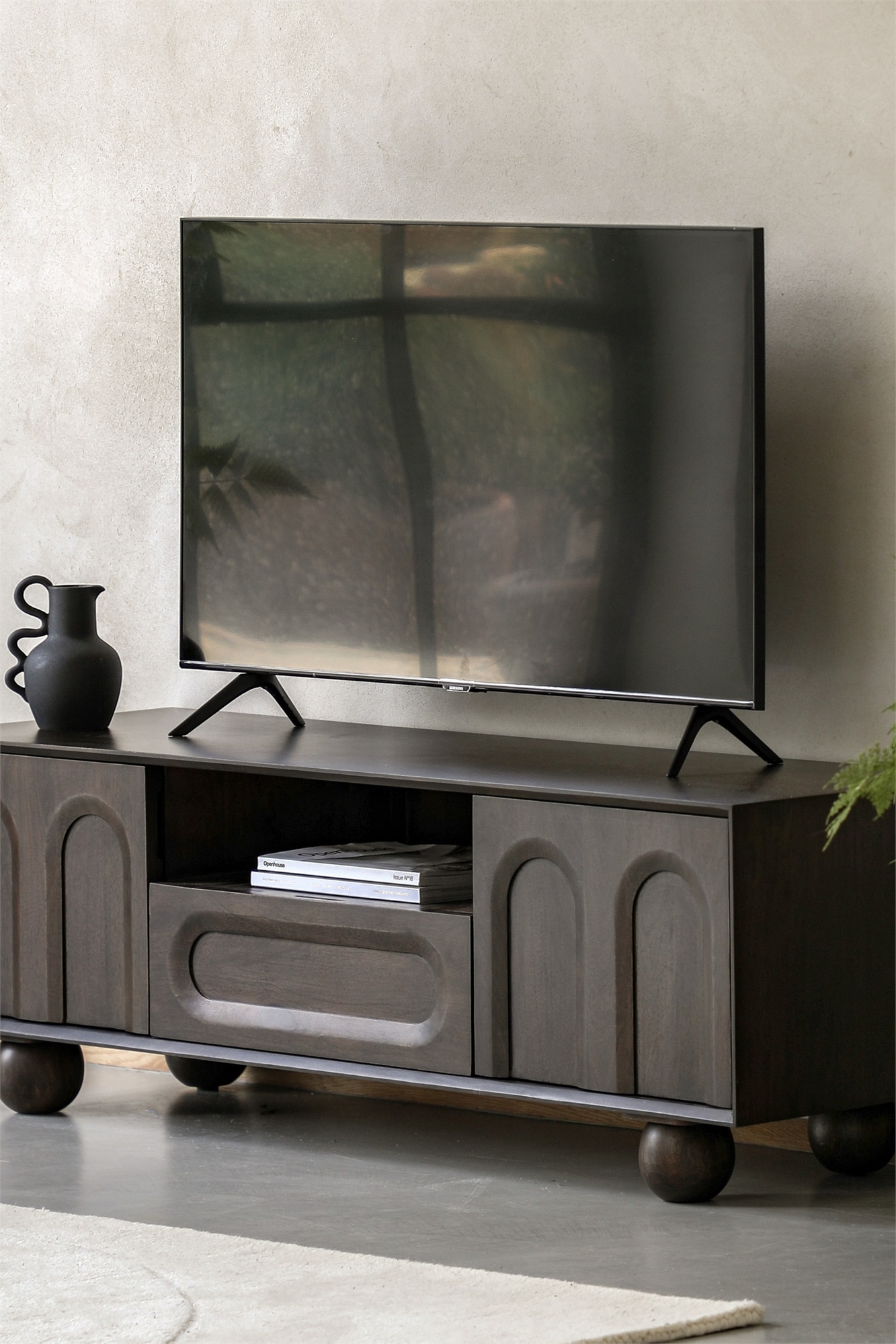 Сделайте смелое заявление о стиле и надежно храните всю свою электронику с помощью этого сказочного медиа-шкафа в стиле 70-х годов. Дверцы шкафа выполнены из древесины манго, окрашенной в темный тон, чтобы подчеркнуть богатую текстуру, а рельефные арки в стиле ретро позволяют спрятать все ваши гаджеты. Каждый предмет изготовлен из высококачественной древесины манго, подчеркивающей природную красоту материала. Благодаря характерному рисунку текстуры, насыщенным тонам и уникальным отметинам, нет двух совершенно одинаковых предметов. Эти органические вариации придают характер и очарование, делая каждый предмет единственным в своем роде. Созданный для воплощения необработанной элегантности природы, этот продукт привносит тепло и аутентичность в любое пространство.Размеры: W1400mmxD400mmxH450mm