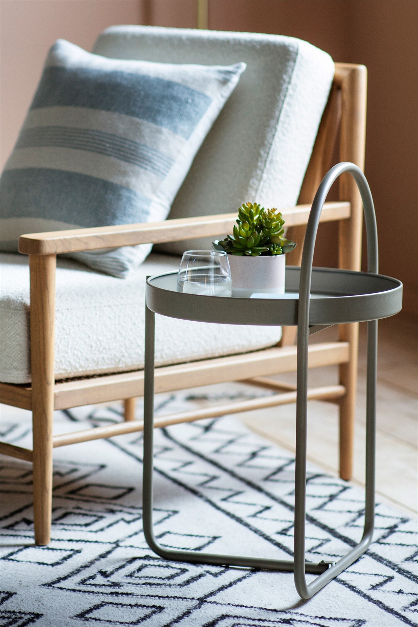 Стильный дизайн этого необычного приставного столика включает в себя столешницу в виде подноса, которая поднимается для большей практичности, и продолжение одной части основания вверх и над столом, чтобы создать эффект "ручки". И столешница, и основание выполнены из металла с лакированным покрытием. Размеры: W400mmxD400mmxH660mm