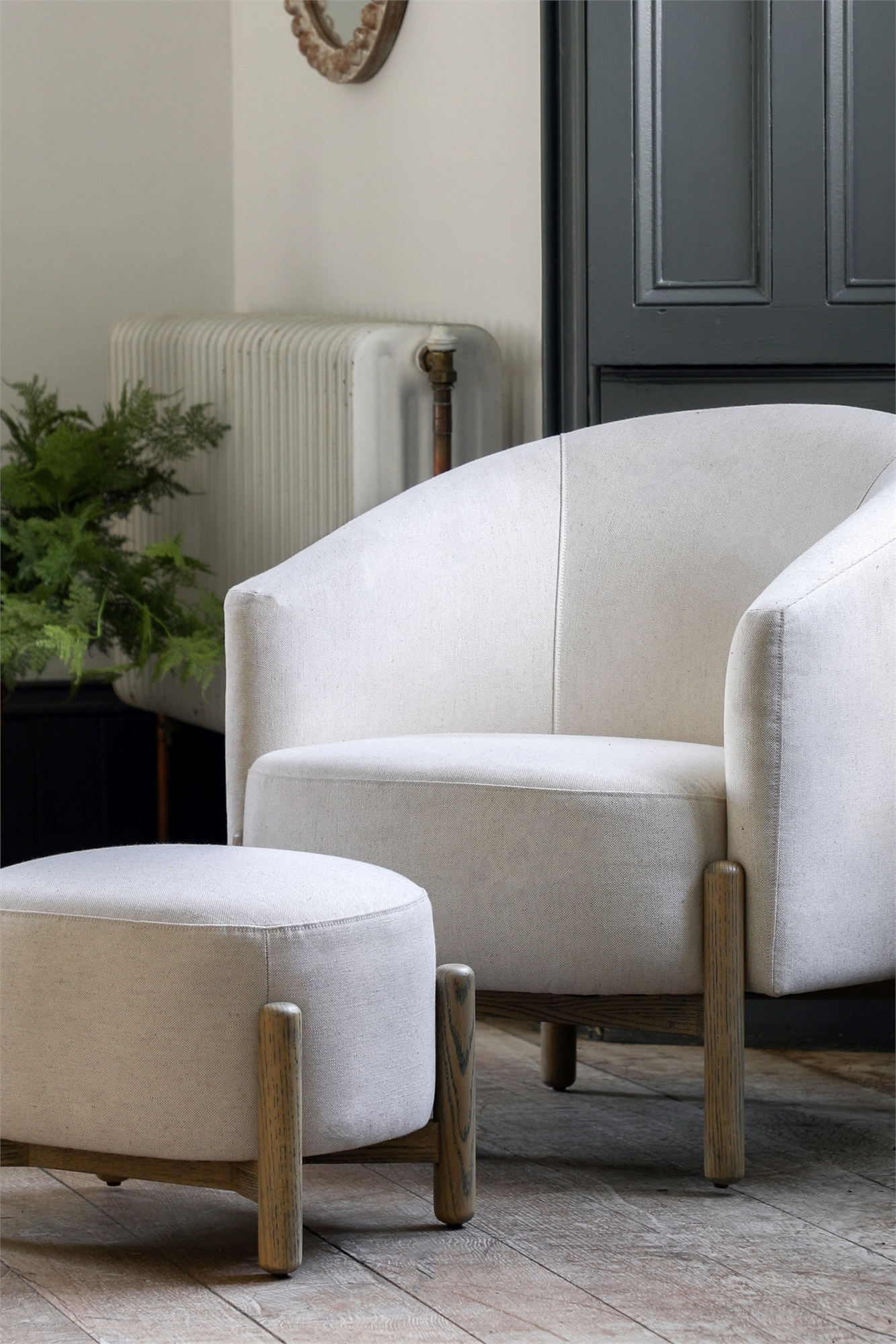 Это потрясающее кресло будет смотреться как дома в самых разных интерьерах. Глубокое сиденье и красиво изогнутая спинка обиты прекрасной тканью натурального цвета, которая идеально сочетается с великолепным деревянным каркасом и ножками. Размеры: W710mmxD750mmxH790mm