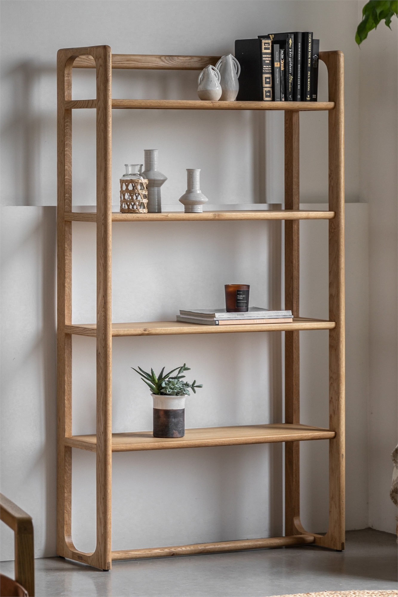 Изготовленный из лучших сортов дуба и шпона дуба, где это практично, с прекрасной натуральной отделкой, этот потрясающий открытый стеллаж предлагает стильный элегантный дизайн. Размеры: W900mmxD310mmxH1700mm