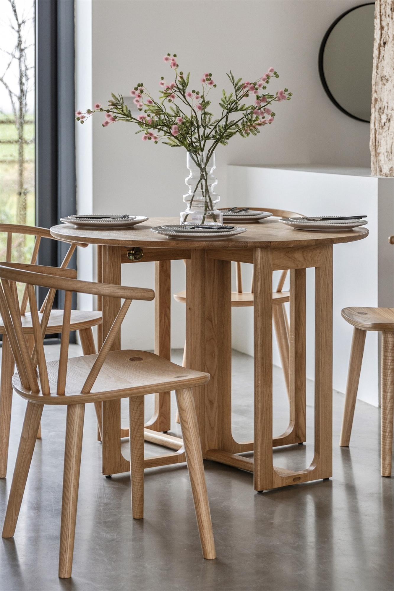 Этот потрясающий складной обеденный стол, изготовленный из лучших сортов дуба и шпона дуба, идеально сочетается с подходящими стульями. Стол, который складывается для большего удобства, предлагает элегантный дизайн с простой круглой столешницей и красивой формой подрамника. Дерево имеет красивую натуральную отделку. Размеры: W1000mmxD1000mmxH750mm