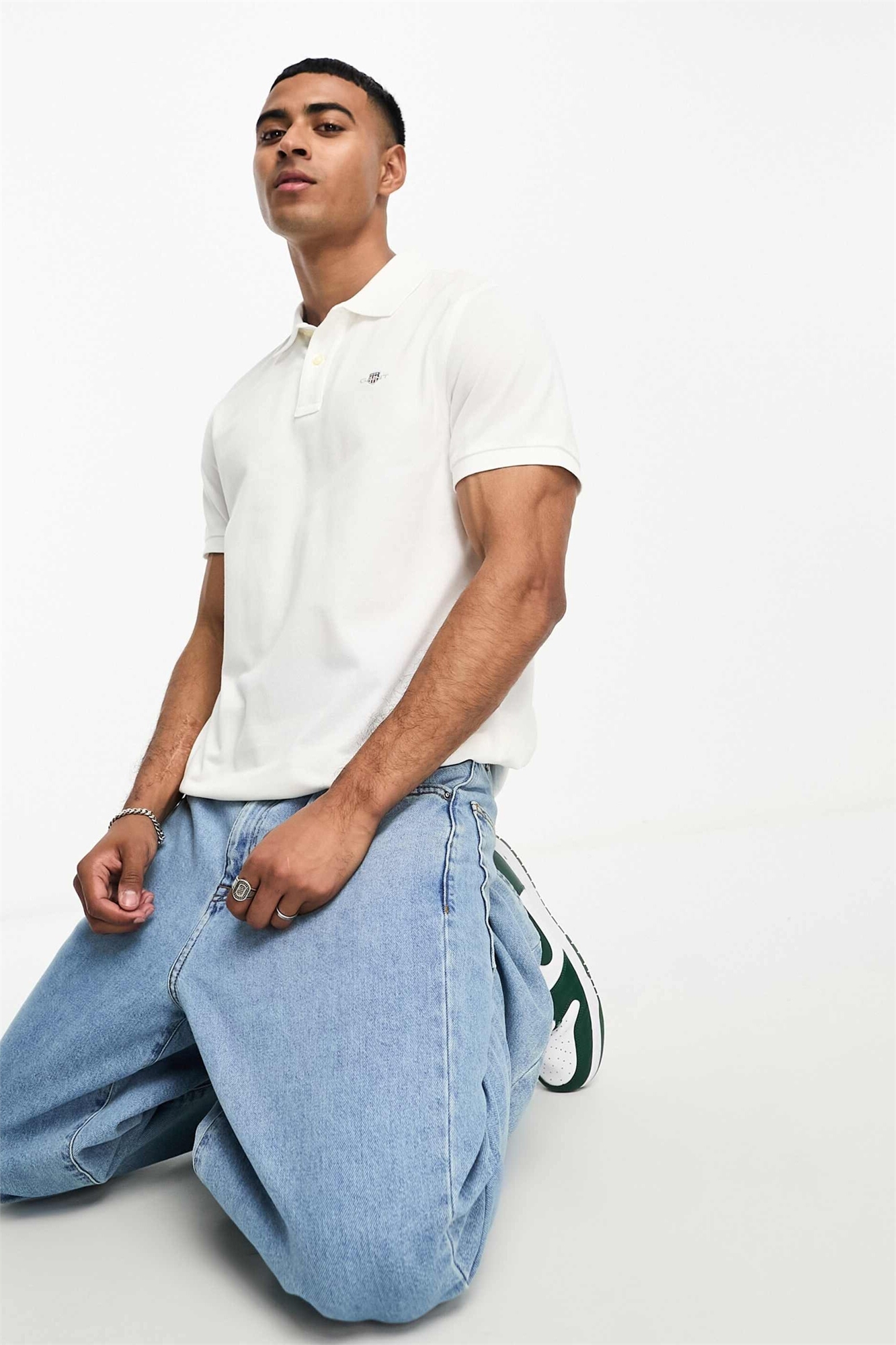 Поло с логотипом на груди, прямой крой, из пике