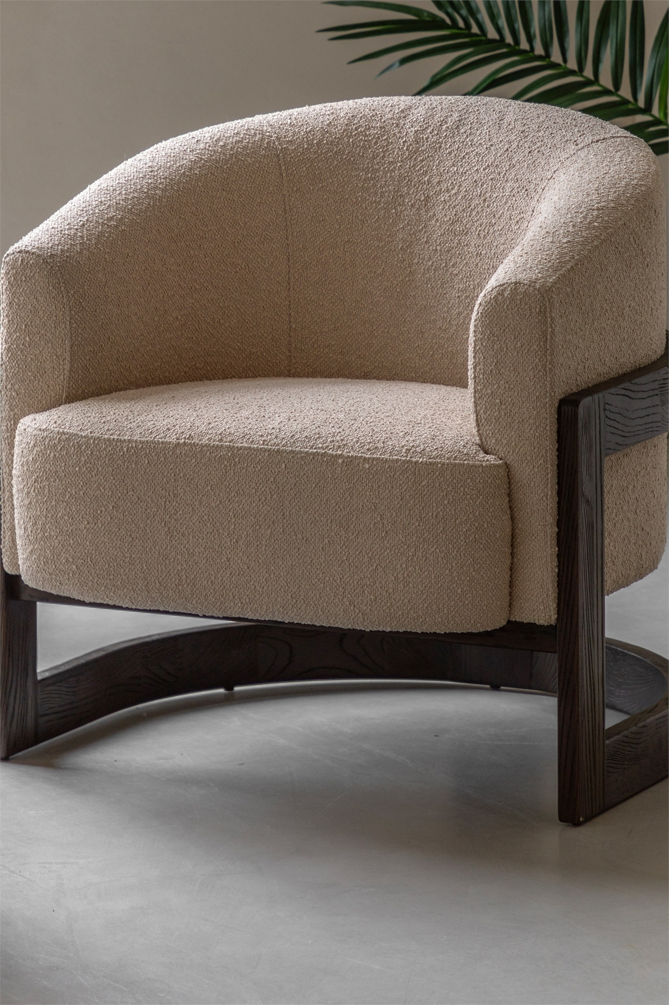 Это кресло сочетает в себе вневременной дизайн и современный комфорт: изогнутая спинка, мягкие подушки и каркас из темного дерева придают ему дополнительную изысканность. Обитое мягкой, текстурированной тканью, оно дополнит как современный, так и классический интерьер. Размеры: W800mmxD770mmxH770mm