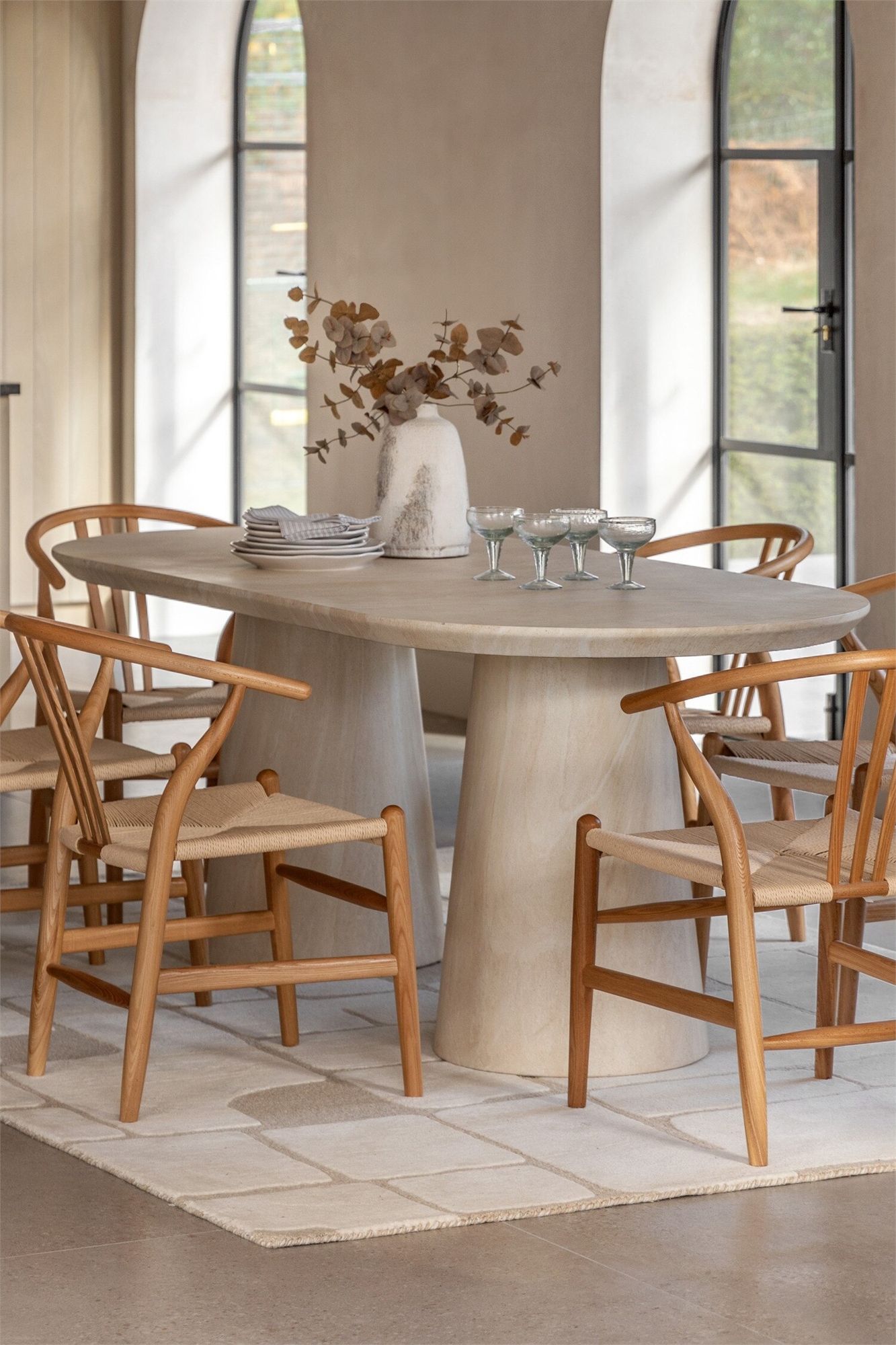 Этот стол - яркий предмет мебели, сочетающий в себе современный дизайн и необработанные материалы. Его гладкая овальная столешница изготовлена из прочного бетона с уникальной отделкой травертином, а две прочные ножки обеспечивают надежное основание. Это уникальное сочетание материалов создает современный и индустриальный вид, который идеально подходит как для закрытых, так и для открытых обеденных зон.Размеры: W2000mmxD900mmxH760mm