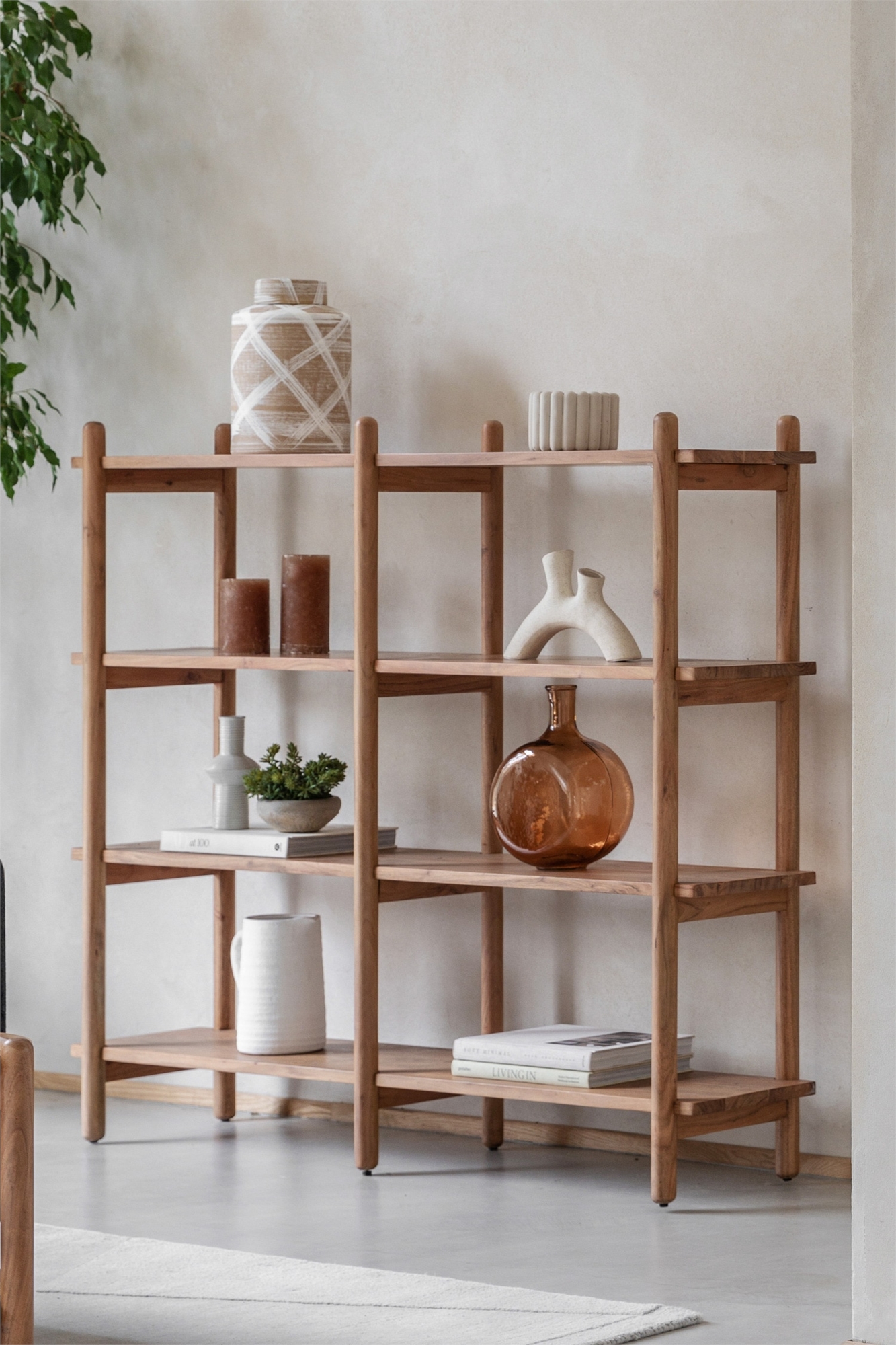 Эта витрина с открытым дизайном идеально подходит для демонстрации вашей коллекции книг и любимых художественных произведений. Изготовленный из древесины акации, широкий 4-полочный шкаф с тонкими полками и закругленными стойками имеет явное влияние винтажного дизайна, что делает его идеальным для современных эклектичных интерьеров. Размеры: W1600mmxD340mmxH1350mm