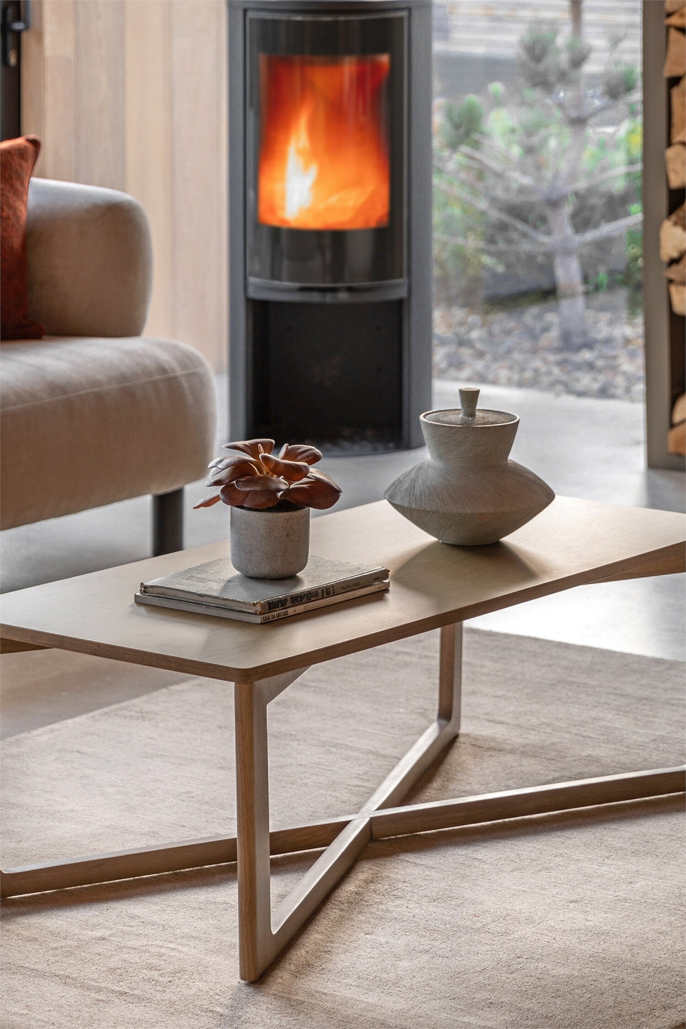 Этот красивый журнальный столик, созданный для современной квартиры, будет одинаково хорошо смотреться в самых разных интерьерах. Он имеет столешницу из дубового шпона с отделкой в серых тонах и ножки из массива каучукового дерева, подобранные в тон столешнице. Размеры: W1200mmxD550mmxH400mm