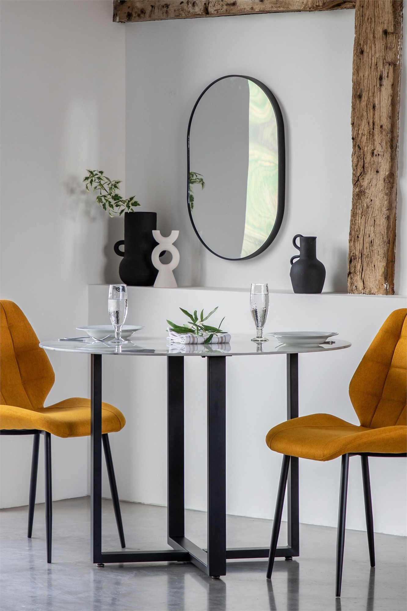 Добавьте в свою столовую нотку современной роскоши. Этот обеденный стол с привлекающей внимание стеклянной столешницей из искусственного белого мрамора и смелыми черными перекрещивающимися ножками произведет впечатление. Идеально подходит для небольших помещений, где вы все еще хотите произвести впечатление, этот стол рассчитан на 4 места: W1100mmxD1100mmxH750mm