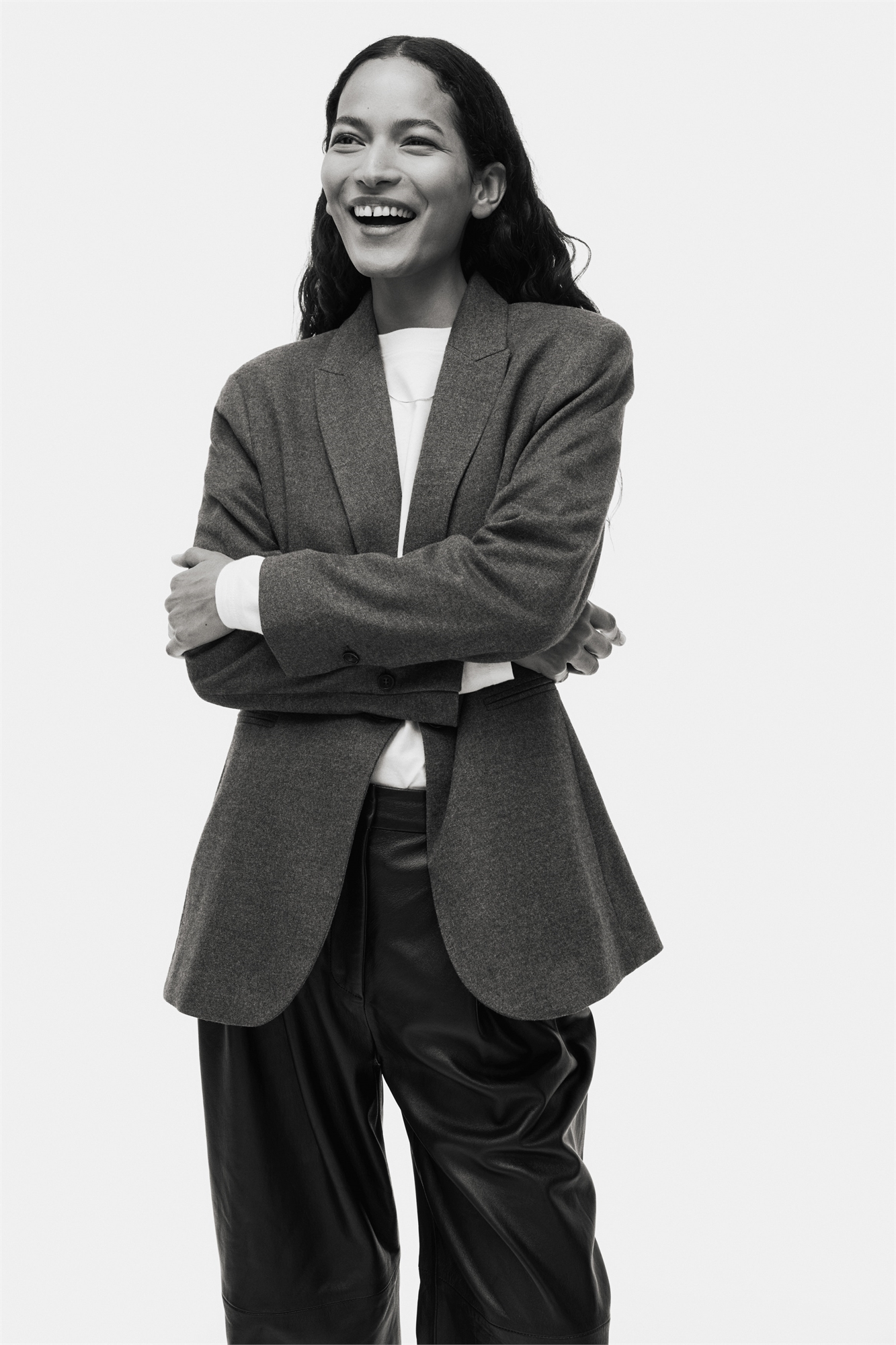 Однобортный блейзер из тканого материала с пикообразными лацканами и пуговицей спереди. Накладки на плечах, разрез и пуговица на манжетах и втачные передние карманы. Одиночная вентиляция сзади. На подкладке.