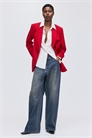 Однобортный блейзер из тканого материала с пикообразными лацканами и пуговицей спереди. Накладки на плечах, разрез и пуговица на манжетах и втачные передние карманы. Одиночная вентиляция сзади. На подкладке.