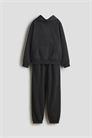 Комплект из толстовки и джоггеров из толстовочной ткани с мягким начесом внутри. Толстовка с капюшоном, завязывающимся спереди, длинными рукавами и карманом-кенгуру. Ребристые манжеты и подол. Джоггеры с эластичной утягивающейся талией, боковыми карманами и одним открытым задним карманом. Эластичная резинка на подоле.