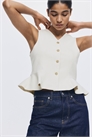 Однобортный жилет из саржи из хлопковой смеси с V-образным вырезом, пуговицами спереди и расклешенным пеплумом. На подкладке.