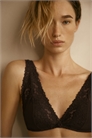 Мягкий бюстгальтер из кружева и сетки с регулируемыми бретелями и чашечками с сетчатой подкладкой, придающими форму бюсту и обеспечивающими хорошую поддержку. Узкая застежка на крючки и глазки сзади.