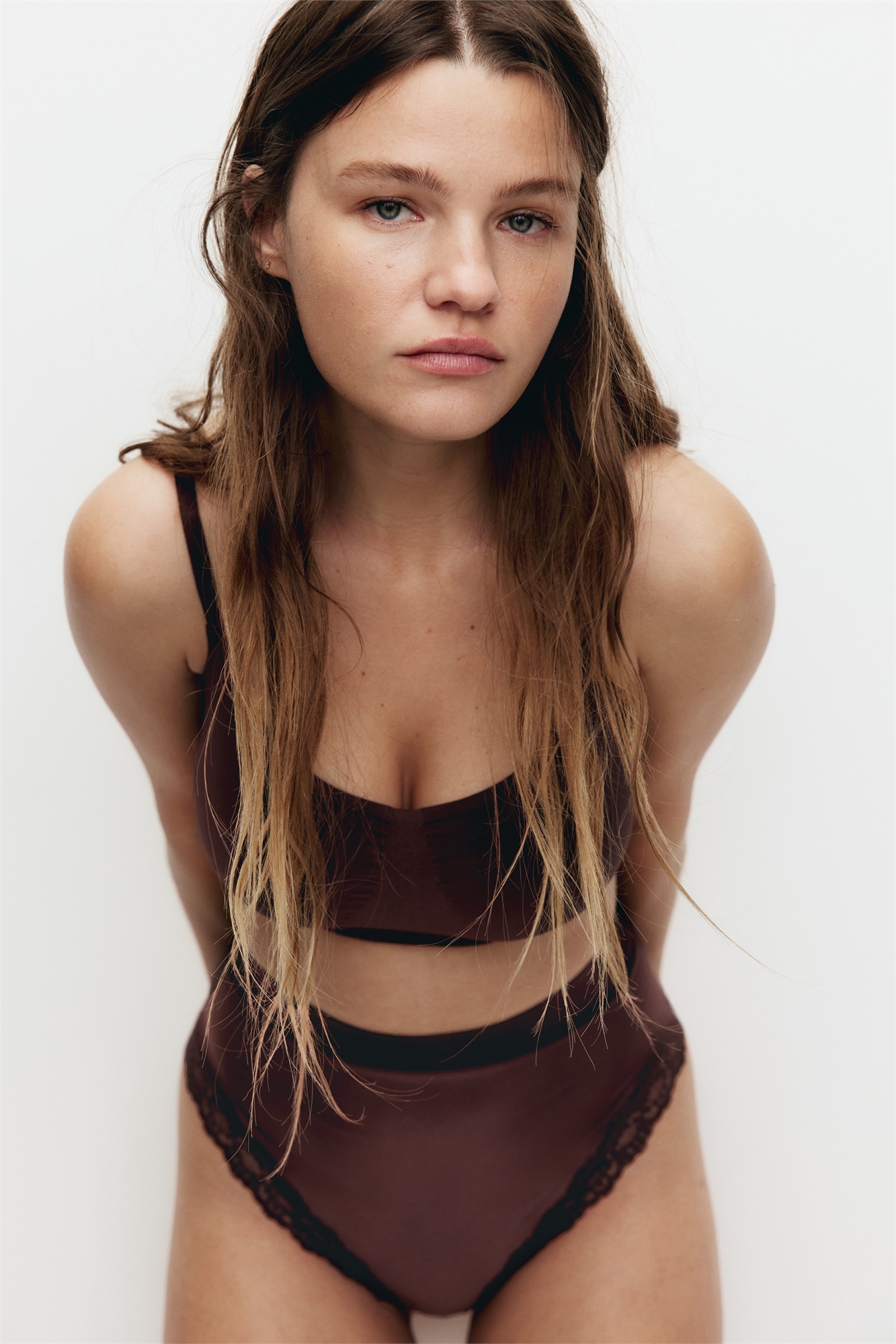 Трусы-бразилиана с минимальным количеством швов для бесшовного и комфортного прилегания к коже. Они имеют легкий формирующий эффект на талии, ластовицу и высокий разрез сзади. Отделка кружевом по проймам ног.