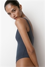 Боди из микрофибры с узкими бретелями и чашками на подкладке со съемными вкладышами, которые формируют бюст и обеспечивают хорошую поддержку. Ластовица на подкладке с потайными кнопками и высоким разрезом сзади. Без застежек.