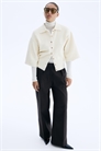 Кардиган из мягкого трикотажа с воротником и пуговицами спереди. Спущенные плечи и широкие рукава, заканчивающиеся ниже локтей.
