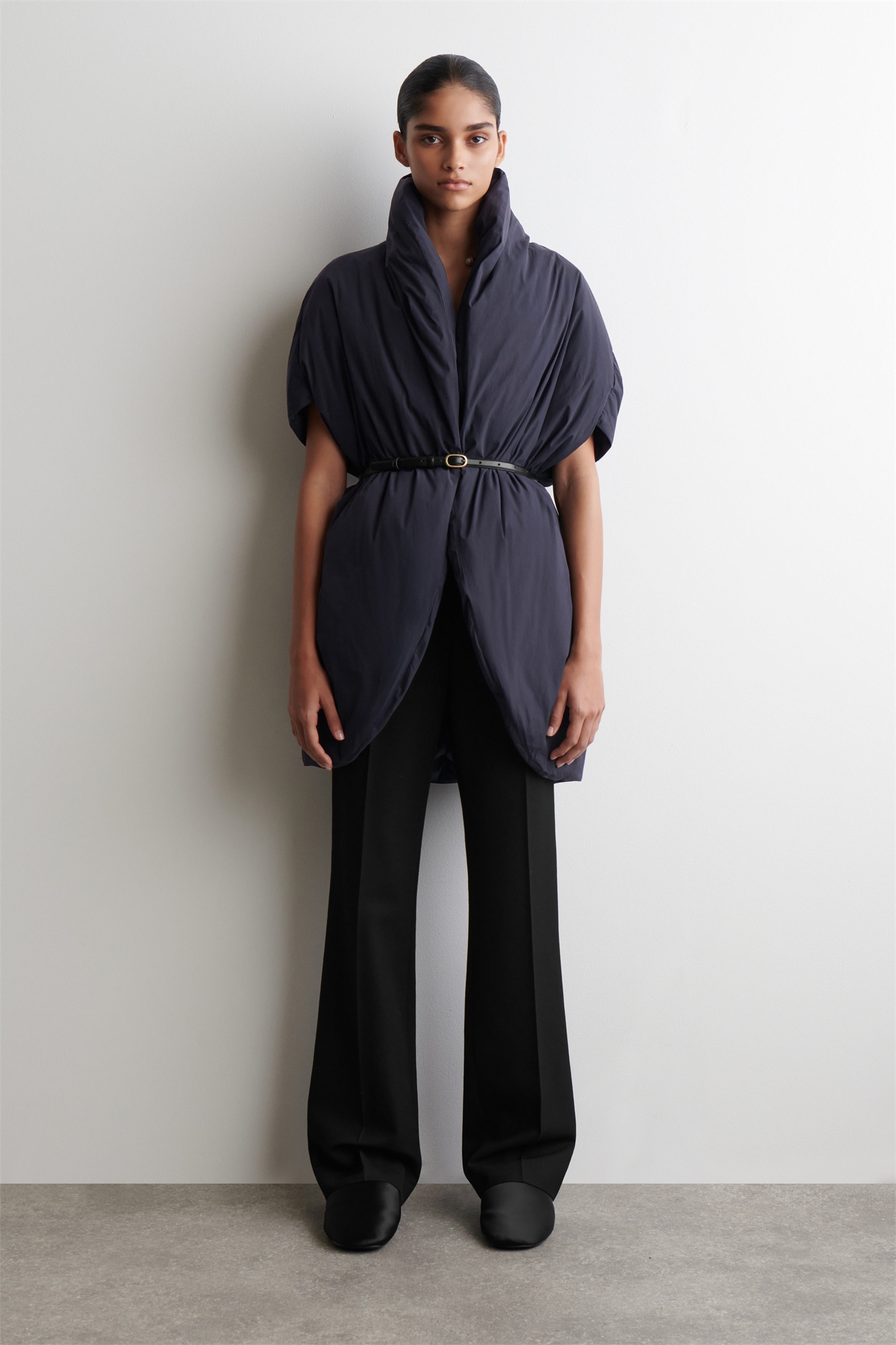 Этот современный пуховик со скульптурным силуэтом оверсайз выполнен в нестареющем темно-синем цвете. Модель с высококачественным пуховым наполнителем сохраняет тепло и при этом легка как перышко. У нее шалевый воротник, укороченные рукава и втачные карманы. Соответствующий цветной пояс можно завязать на талии. Свободный кройЗастежка на шпилькеПереработанный полиамид - это полиамид, изготовленный из текстильных отходов производства Внешний материал: 100 % переработанный полиамид (переработанный нейлон). Подкладка: 100 % переработанный полиэстер. Набивка: 80 % переработанного пуха, 20 % переработанных перьев. Детали исключены/машинная стирка Длина по спинке в размерах XS/S = 94,8 см, M/L = 96,8 см / Модель носит размер XS/S