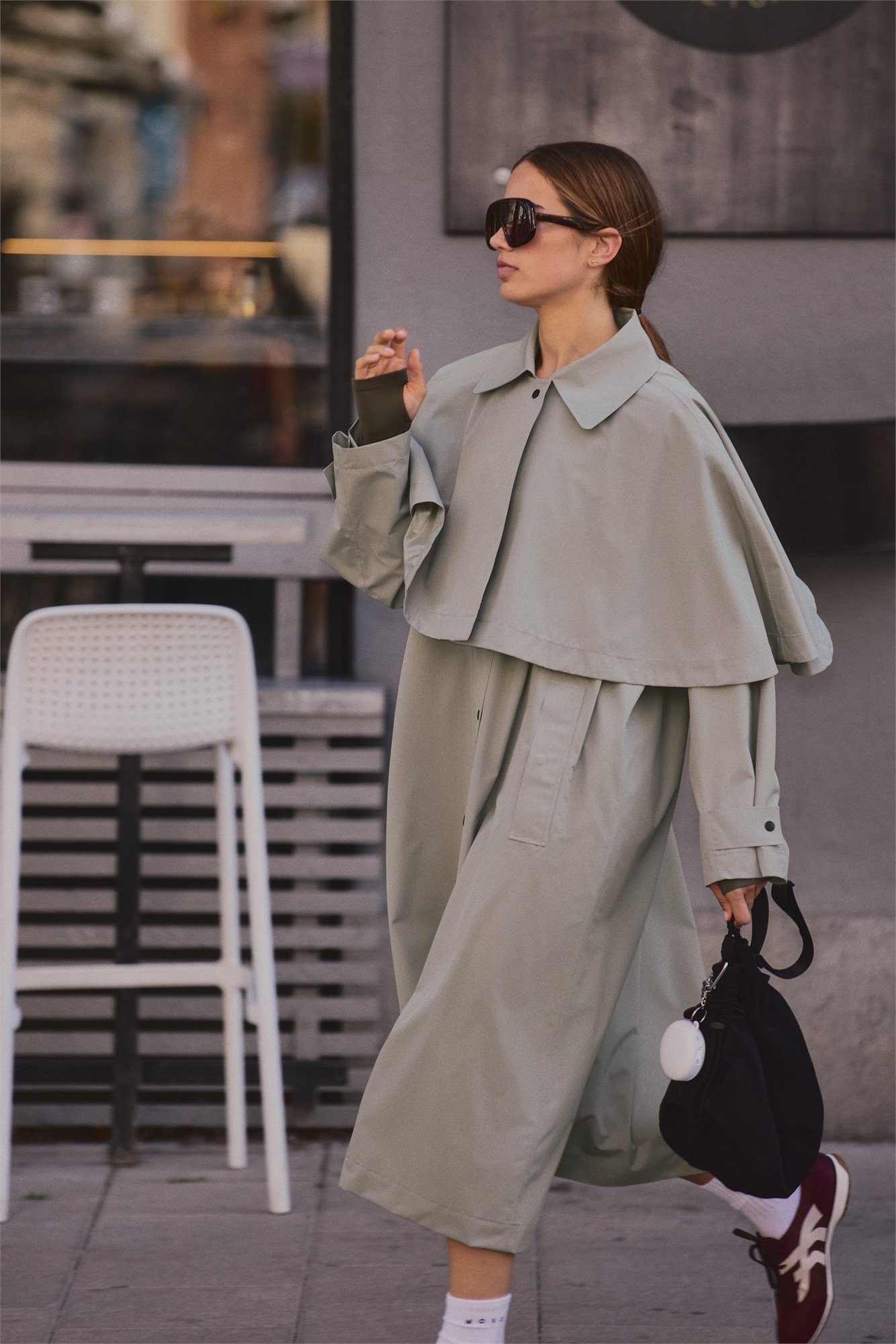 Дождевая парка увеличенного размера из функциональной ткани StormMove™ для защиты от ветра и дождя, которая также хорошо пропускает воздух в любую погоду. Съемный капюшон с застежками на кнопках и длинными завязками в виде шарфа спереди. Съемная накидка с застежками. Застежка-молния и ветрозащитная планка с прижимами спереди, спущенные плечи и длинные рукава с регулируемой прижимной планкой на манжетах. Накладные карманы с каждой стороны с потайной кнопкой и прямой подол.