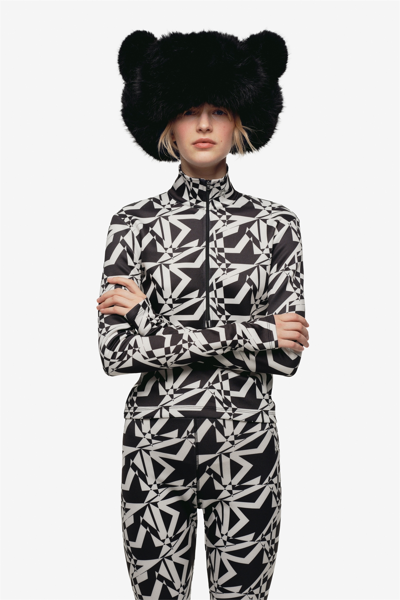 Облегающий топ из ткани, напоминающей водолазку, с принтом по всей поверхности. Двухслойная горловина с небольшим принтом из фольги, застежка-молния в верхней части и длинные рукава с отверстиями для больших пальцев. Аккуратный подол. Принт по всей поверхности, деталь из фольги и застежка-молния с фирменным мотивом звезды.