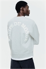 Топ из легкой хлопковой ткани с принтом. Круглый вырез с ребристой отделкой, заниженные плечи, длинные рукава и широкая ребристая отделка на манжетах и по низу. Свободный крой для просторного, но не слишком объемного силуэта.